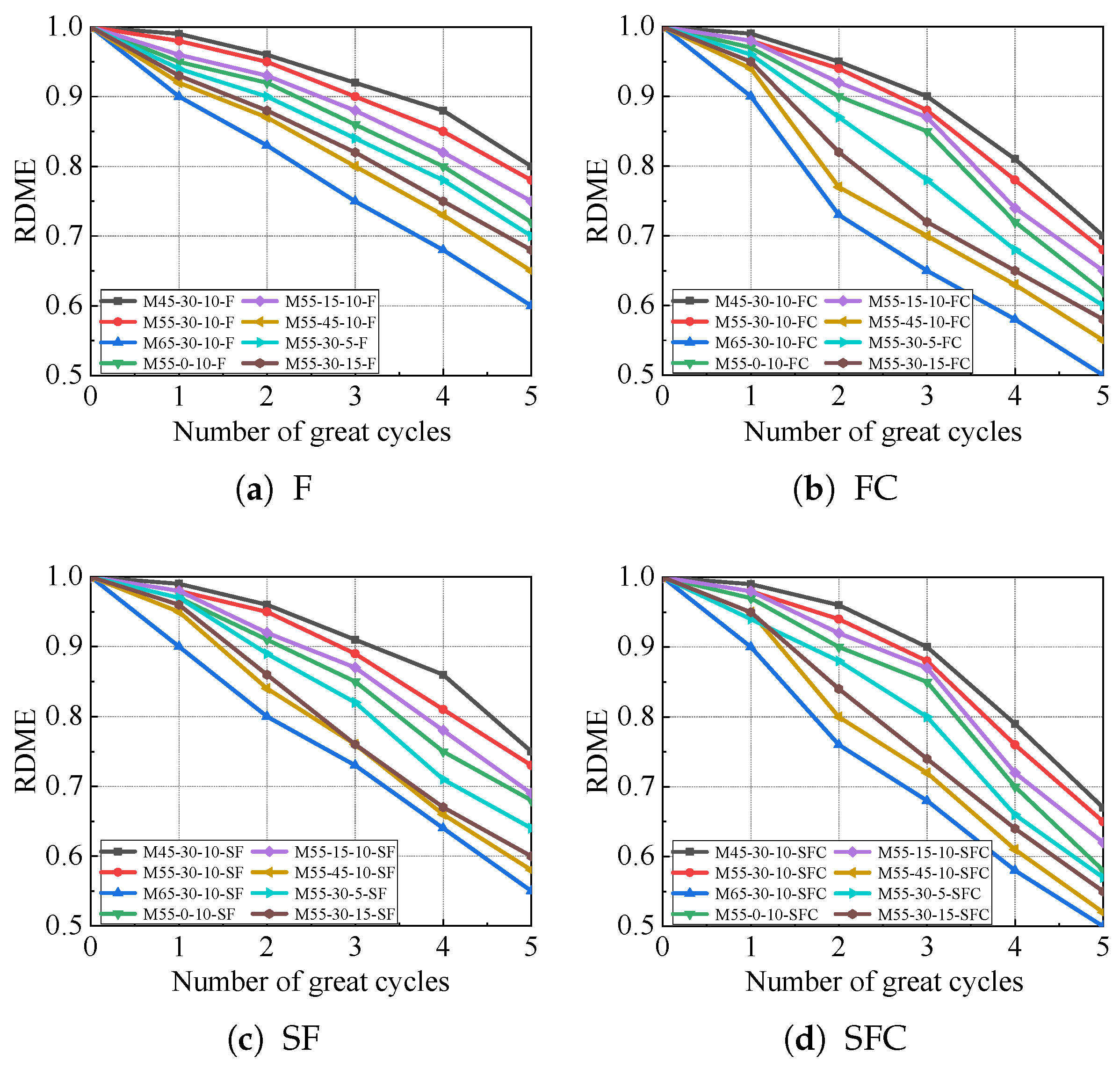 3.4. Relative Dynamic Modulus of Elasticity (RDME)