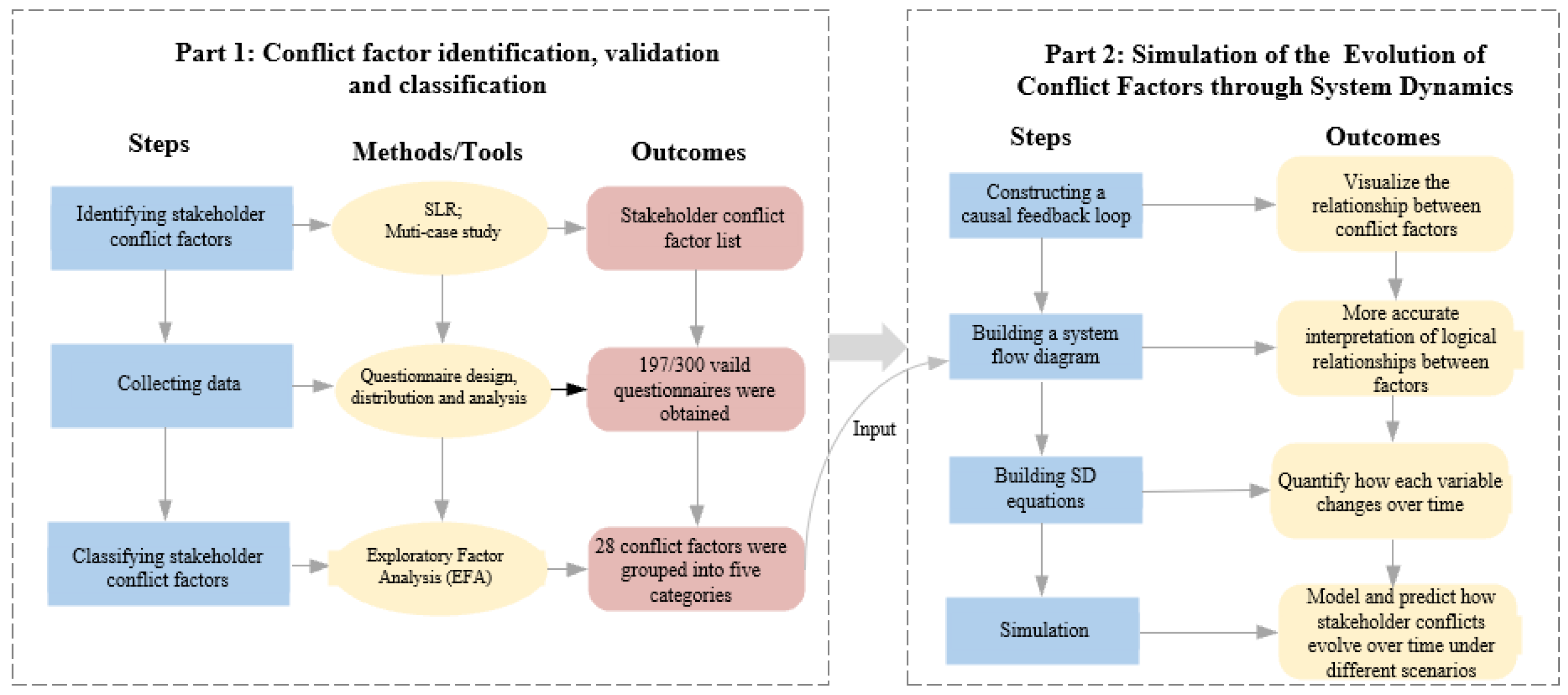 - Dynamic Evolution Modeling (RO3): SD is employed to construct causal feedback models and stock-flow diagrams, simulating the interactions and evolution of conflict factors, validated through a case study.