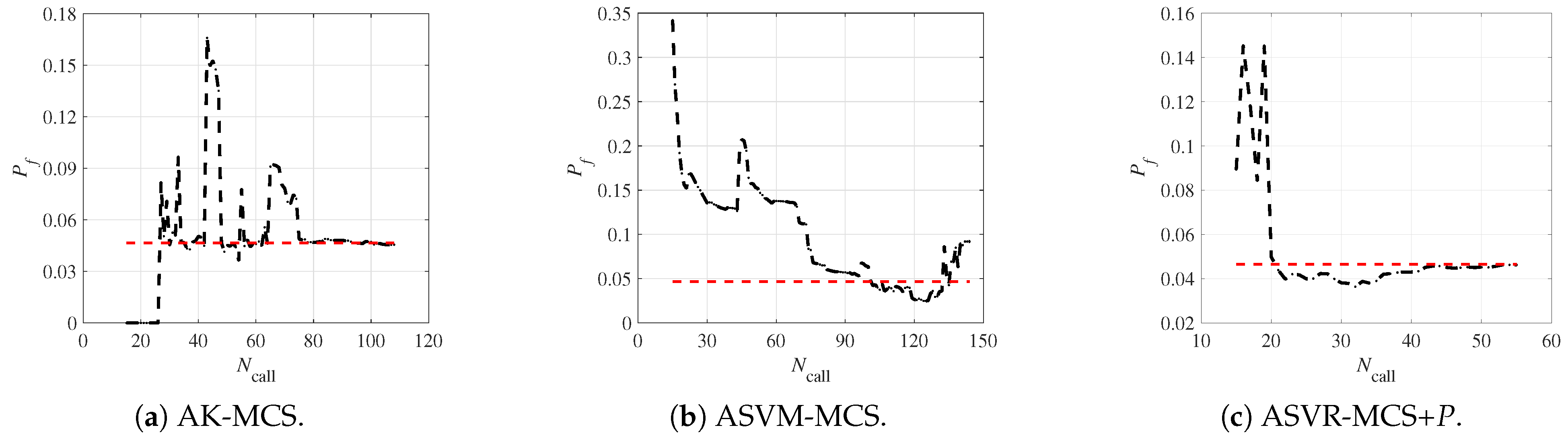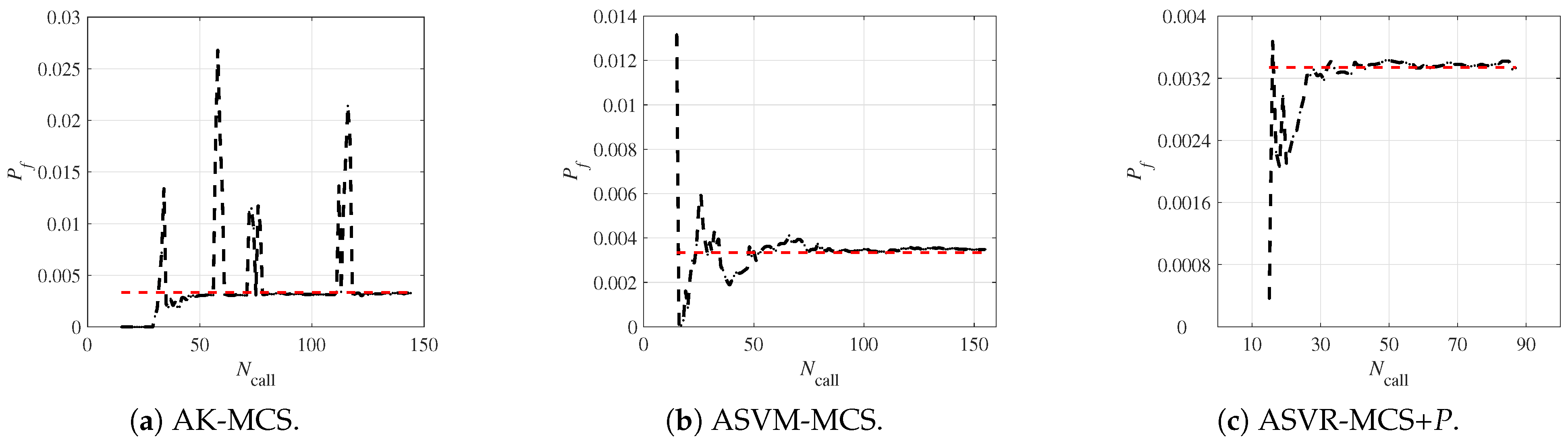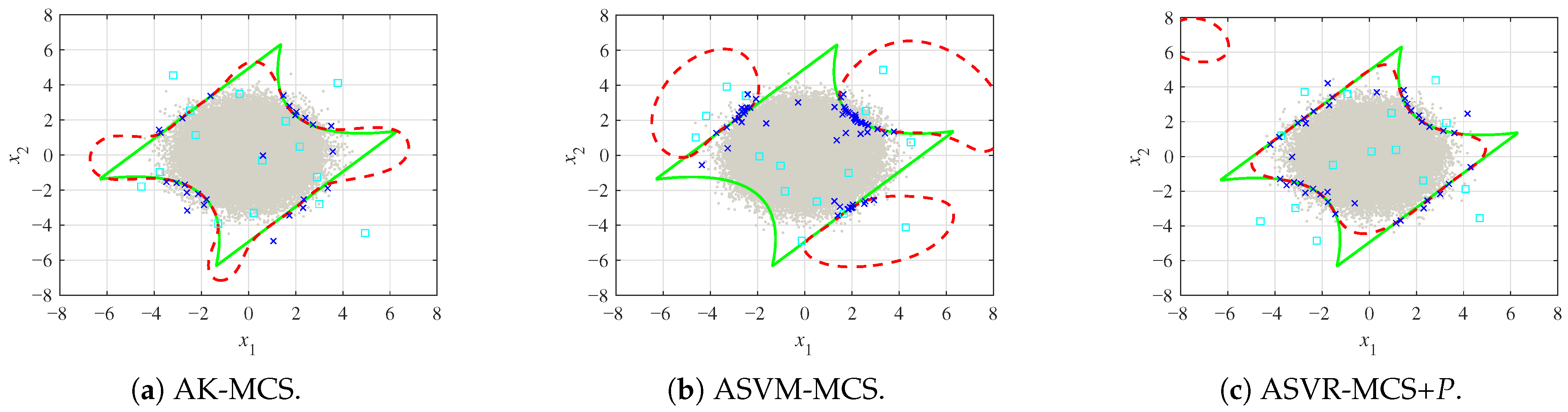 | Method | MCS | AK-MCS | ASVM-MCS | Proposed Method: ASVR-MCS | ||