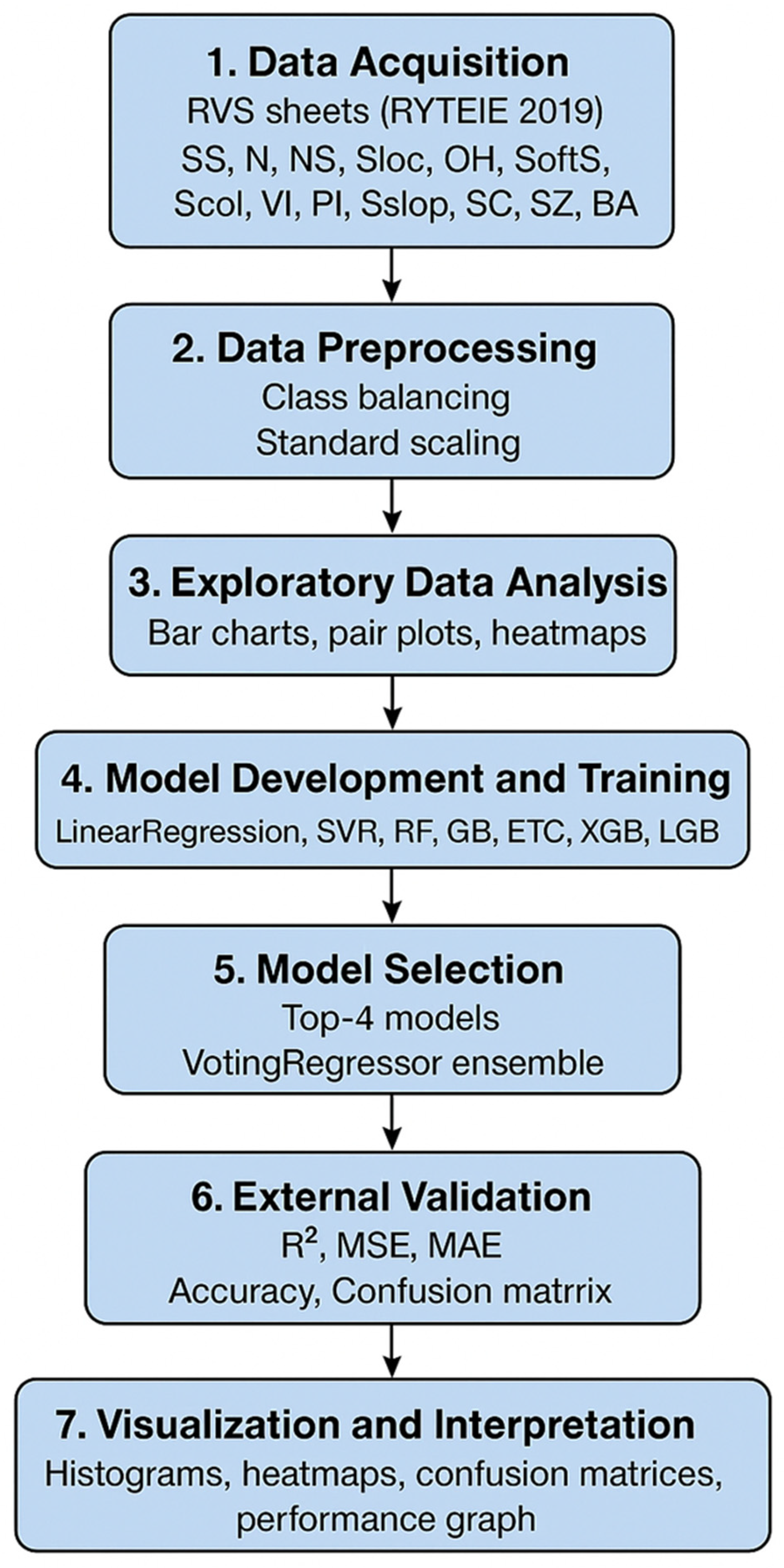 5]. Conventional techniques demand a lot of time and expert studies, and, for a high level of evaluations in a widespread manner, in environments with a scarcity of resources, such techniques become unfeasible. To counter such limitations, rapid visual screening (RVS) methodologies have been proposed [