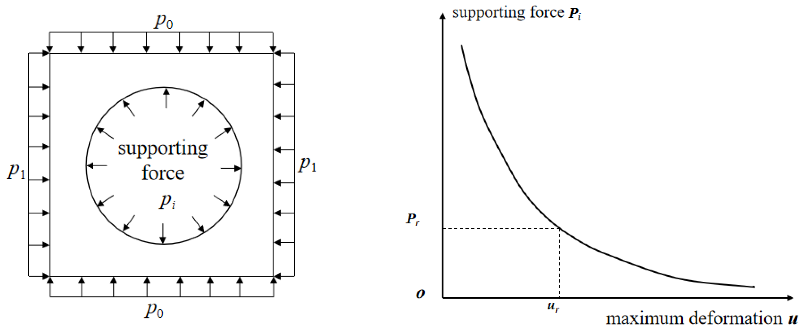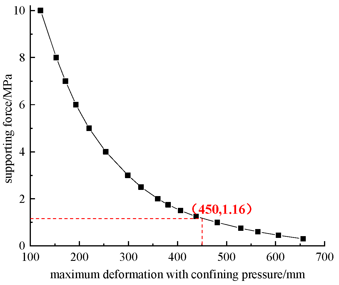Relationship curve between support force and maximum deformation of surrounding rock for Mao County Tunnel, Chengdu–Lanzhou Railway.