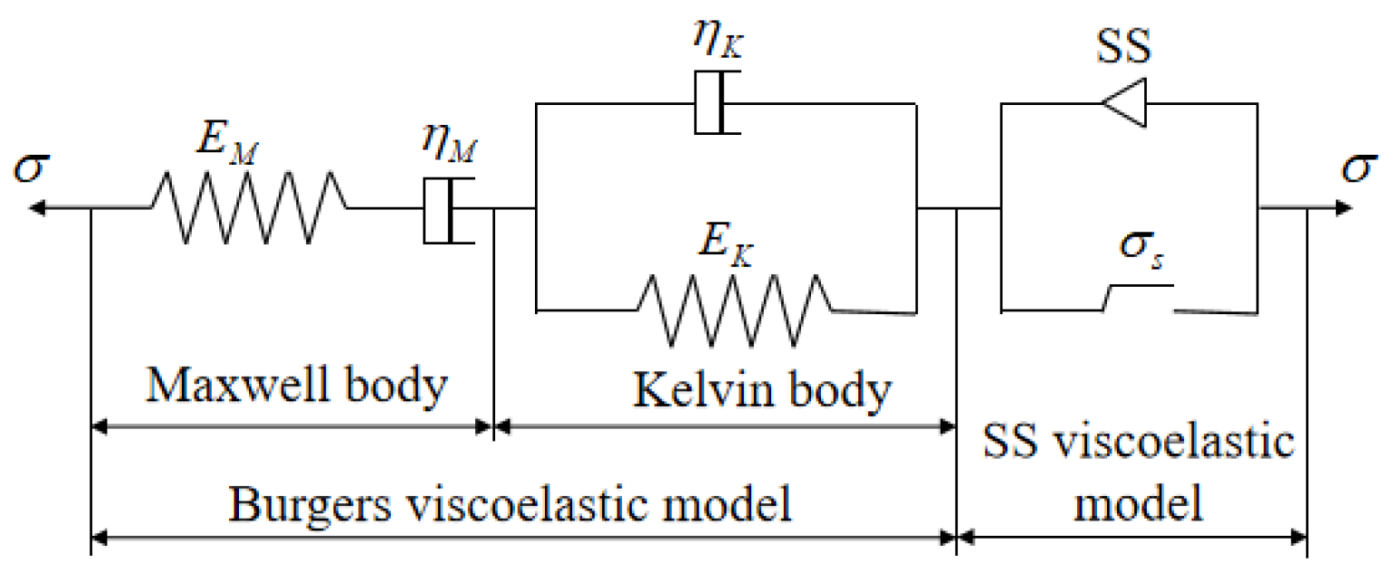 Viscoelastic–plastic strain softening creep mechanical model for soft rock.
