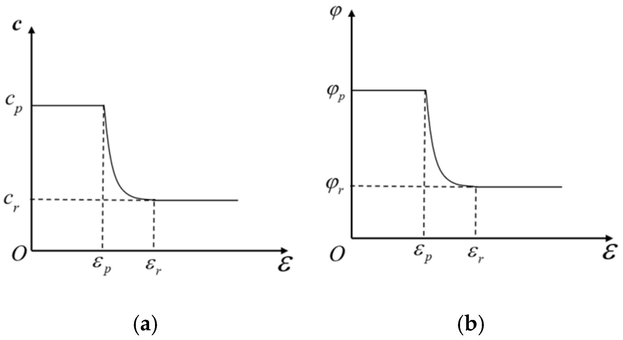 | Cohesionc (MPa) | 0.6 | 0.54 | 0.46 | 0.3 | 0.15 |