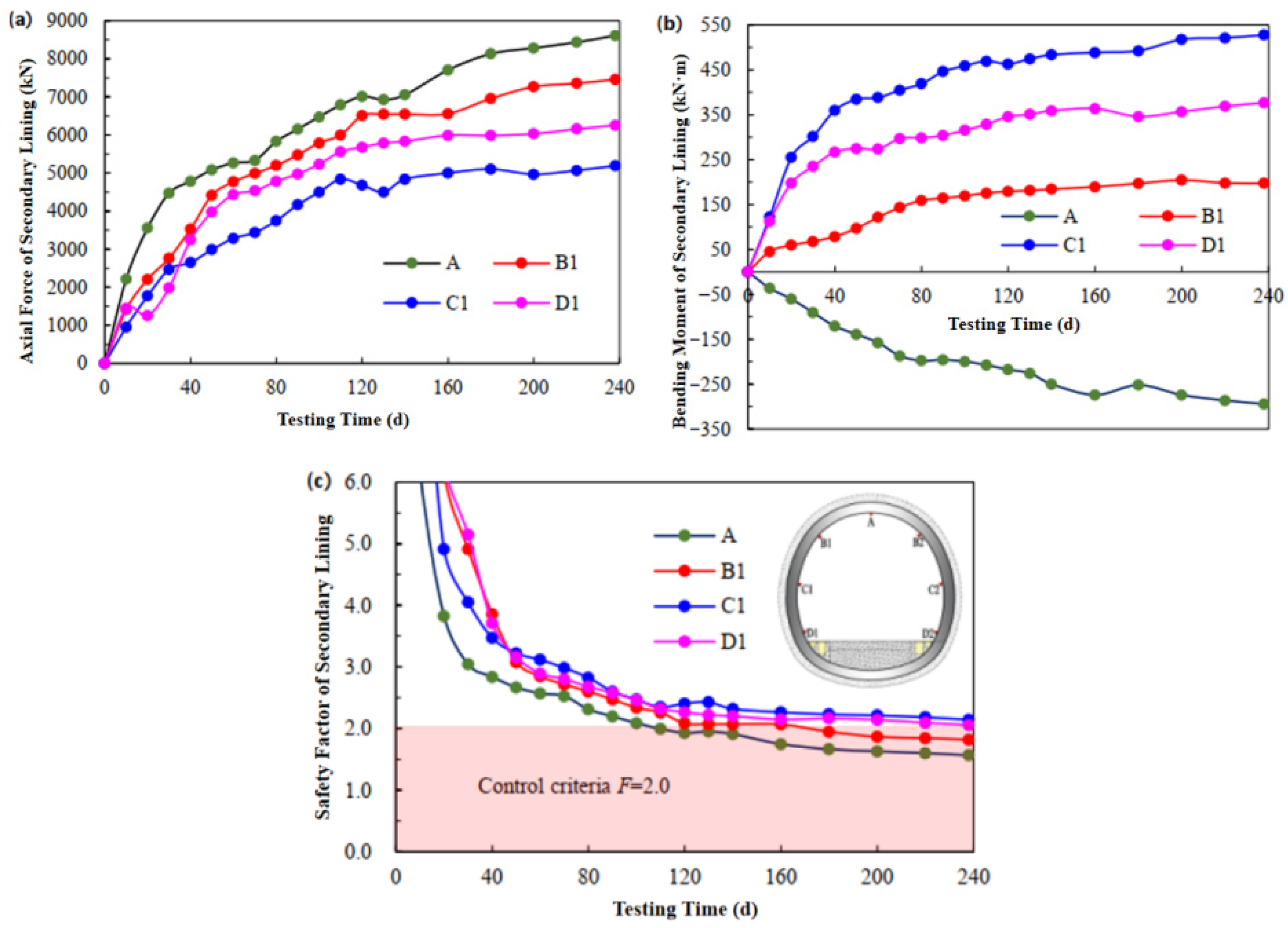 Evolution law of internal forces in the secondary lining of Mao County Tunnel, Chengdu–Lanzhou Railway.