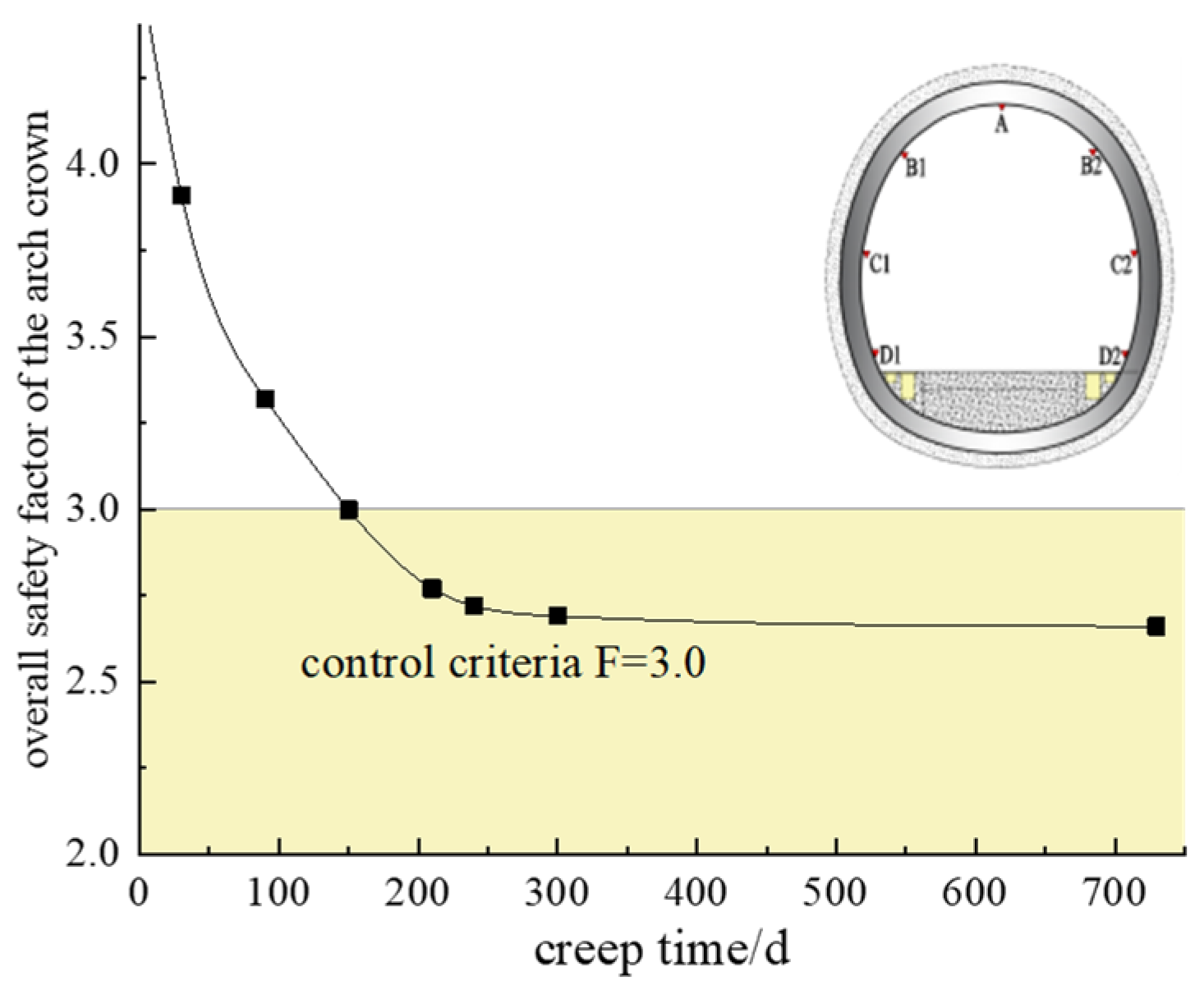 | Creep Time | Rock-Anchor Bearing Arch | Shotcrete | Secondary Lining | Overall Safety Factor |