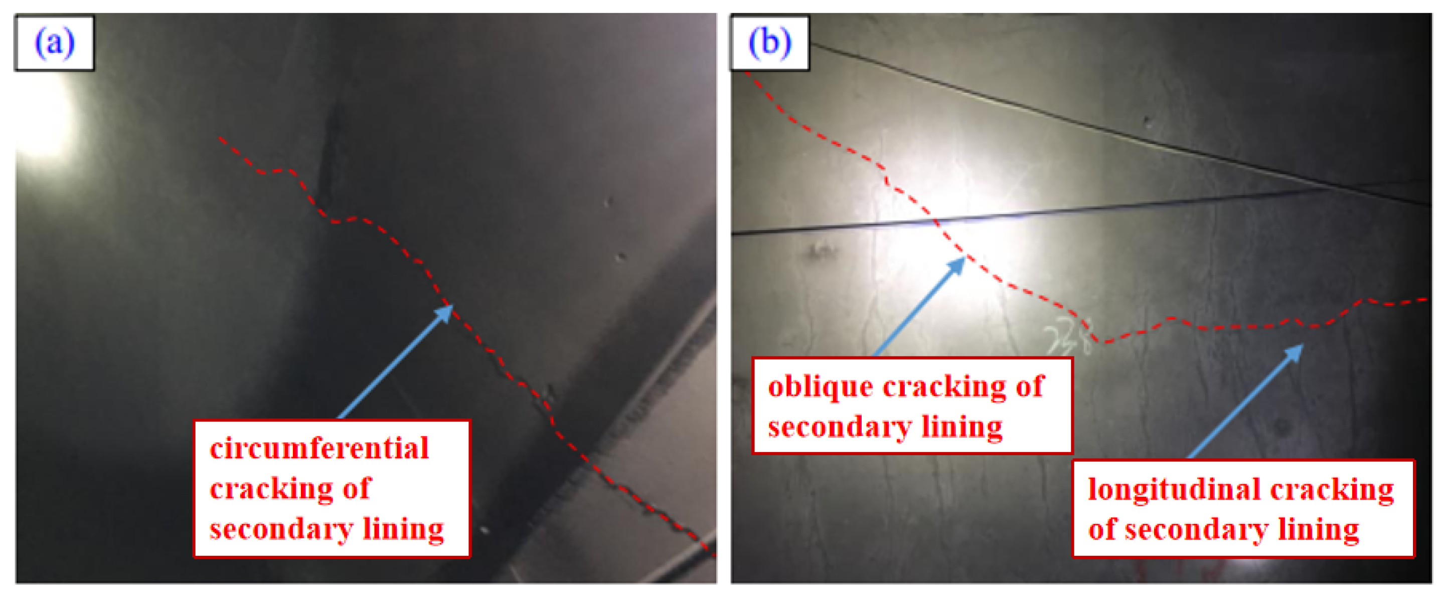 Cracking phenomenon of secondary lining in Mao County Tunnel, Chengdu-Lanzhou.