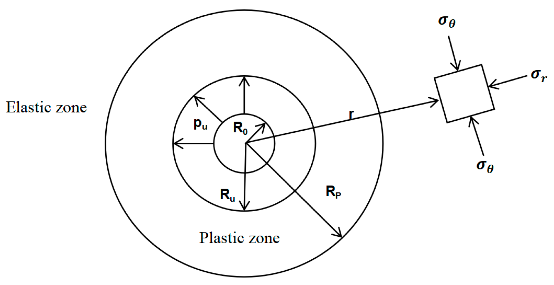 - Jiang, M.J.; Shen, Z.J. ExpanSionof CylindriCa1 Cavity of Materials with Strain-SofteningBehaviour. Chin. J. Geotech. Eng. 1995, 4, 10–19. [Google Scholar]