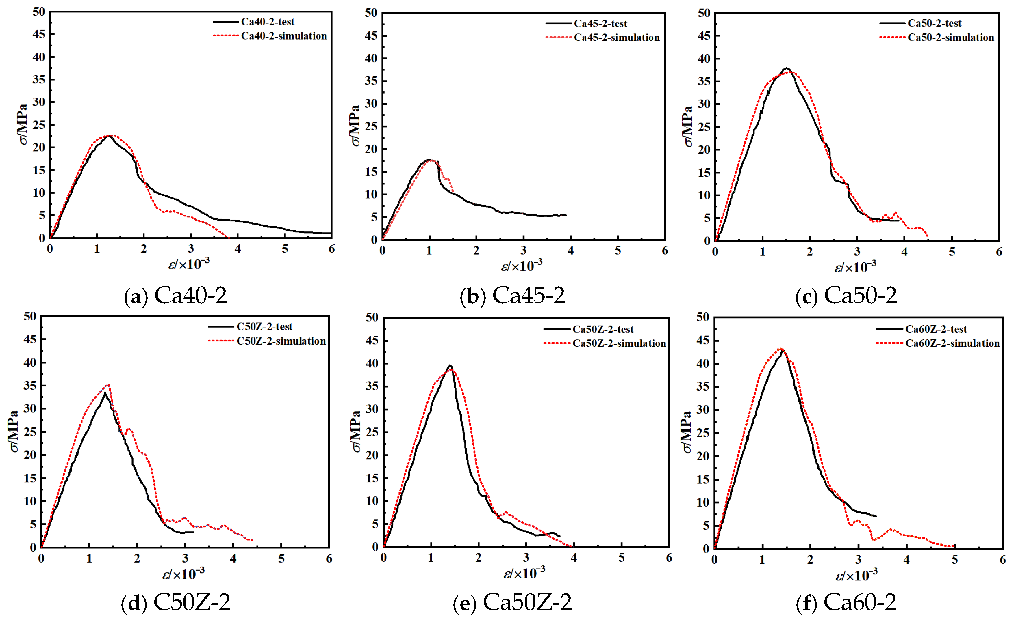 | Test/MPa | Simulation/MPa | Error/% | Test/×10−3 | Simulation/10−3 | Error/% | |