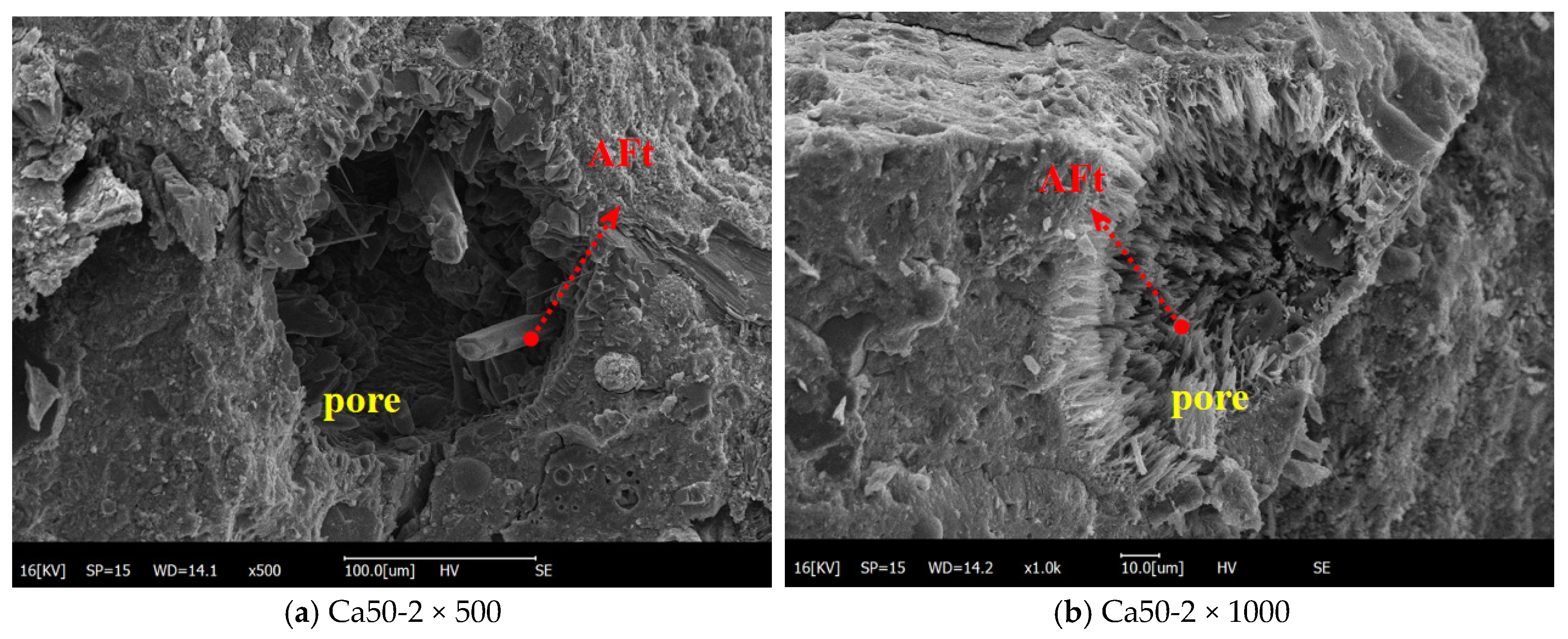 3.4. Microstructure and Microscopic Mechanism of ASR Inhibition of HPC in Alkaline Solution