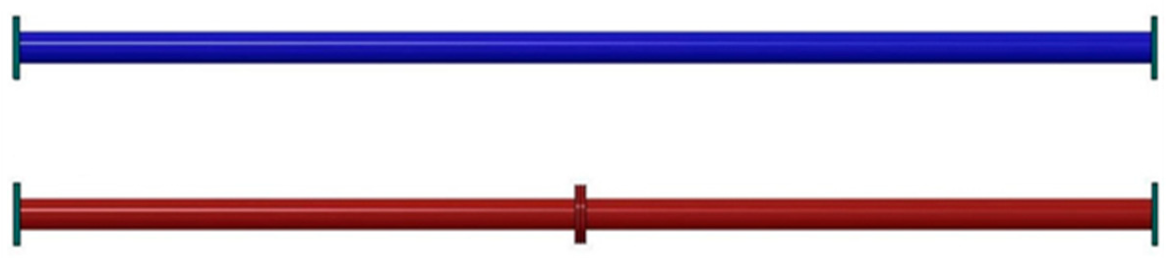 - Pournara, A.E.; Karamanos, S.A. Mechanical Behavior of Steel Pipes With Local Wall Distortions Under Cyclic Loading, in: Volume 3: Design and Analysis. In Proceedings of the ASME 2012 Pressure Vessels and Piping Conference, American Society of Mechanical Engineers, Toronto, ON, Canada, 15–19 July 2012; pp. 507–513. [Google Scholar] [CrossRef]