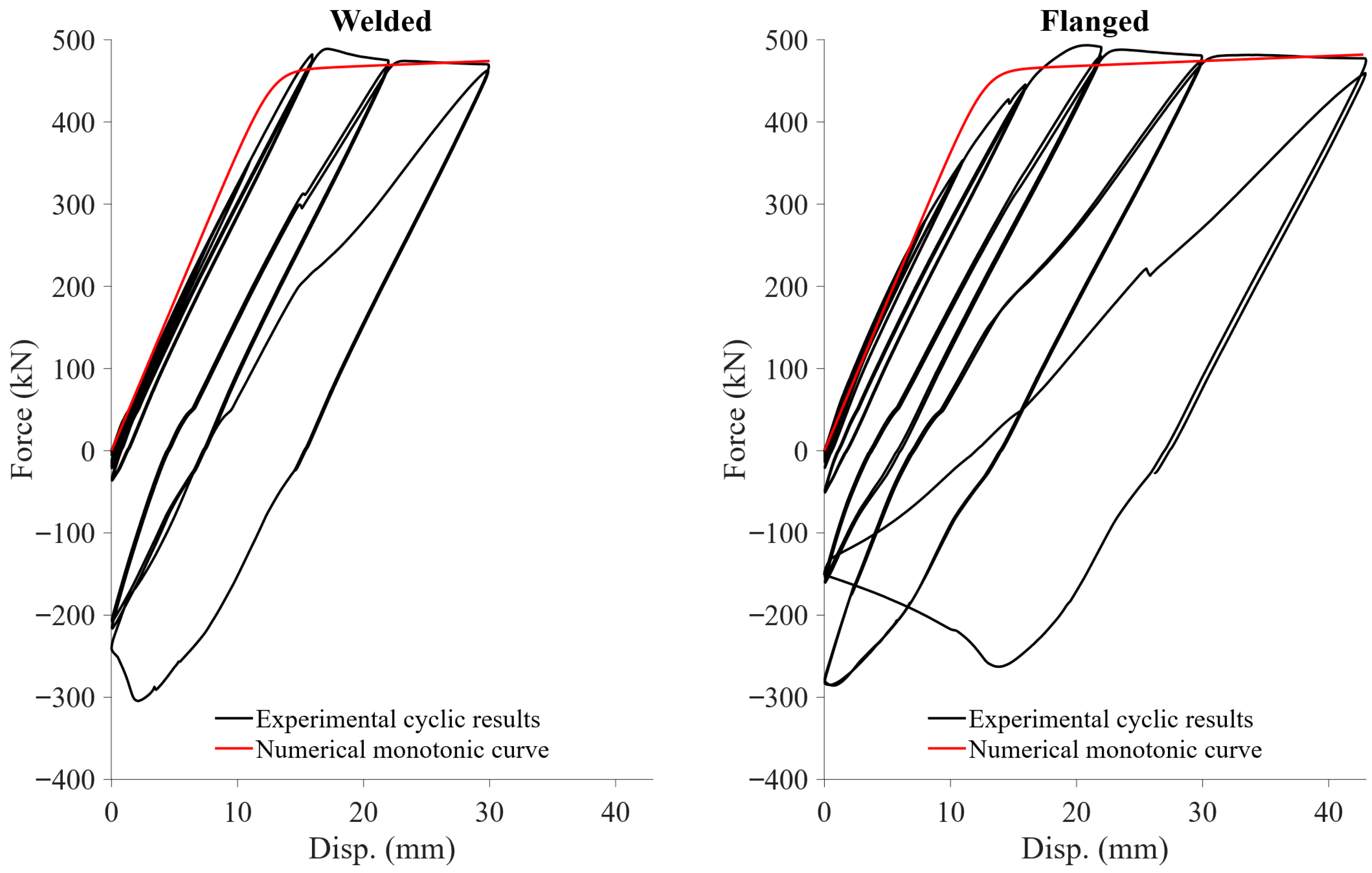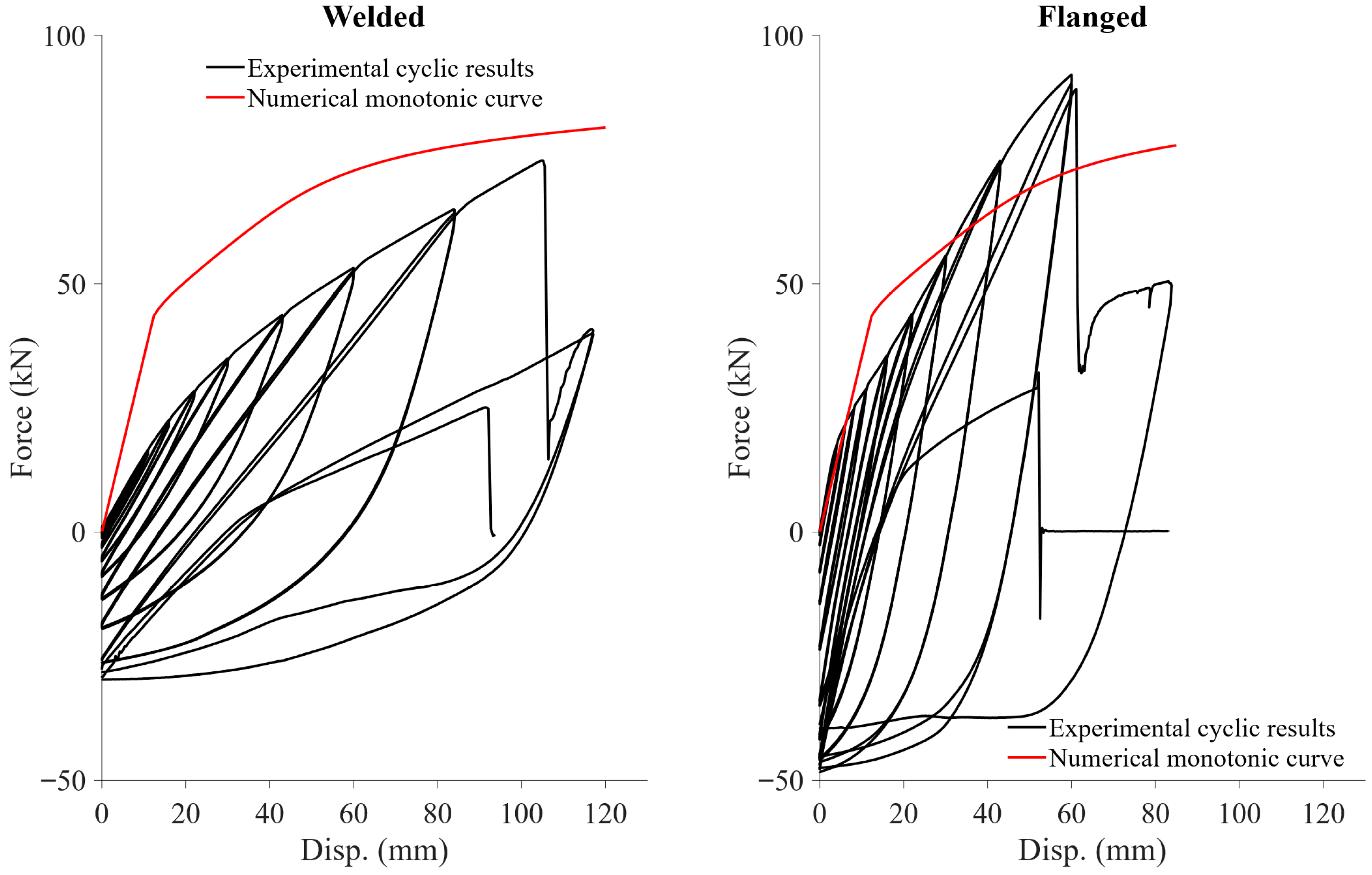 | Ultimate force (kN) | 488.93 | 493.32 | 41.81 | 34.28 | 74.81 | 92.08 |