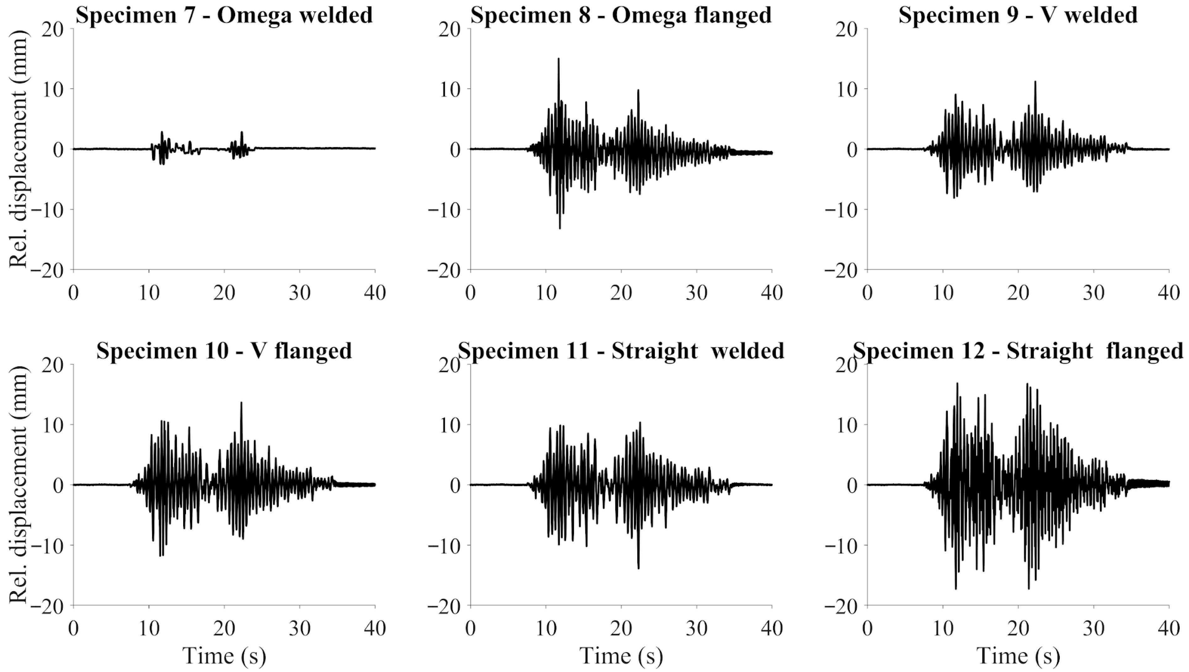| Pipe | Specimen | Peak Relative in-Plane Displacement (mm) | |||
