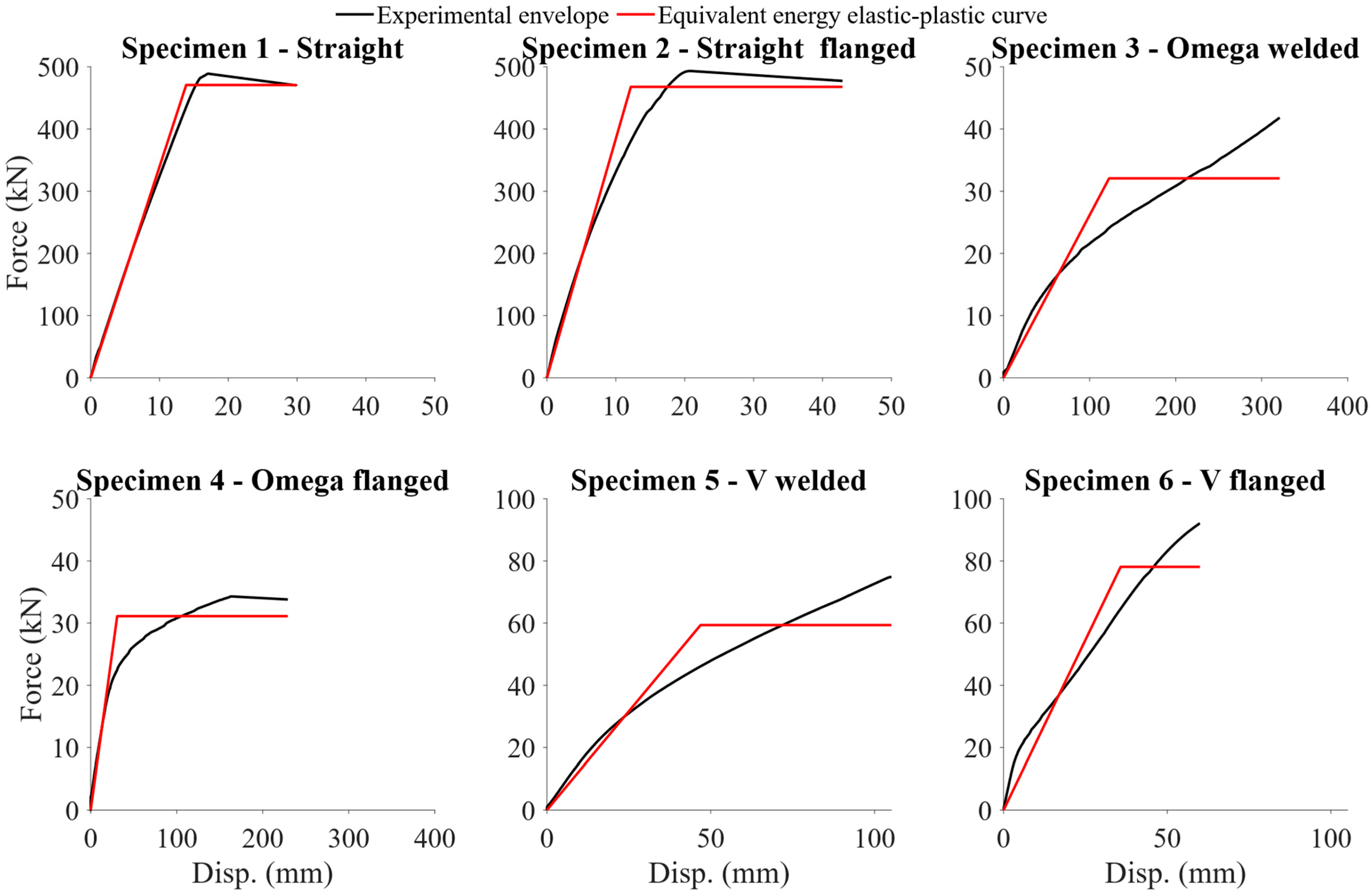 | Elastic stiffness (kN/mm) | 33.93 | 38.42 | 0.26 | 1.01 | 1.27 | 2.18 |