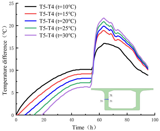 4.2.2. Influence of Insulation Temperature on Box Girder’s Temperature Difference
