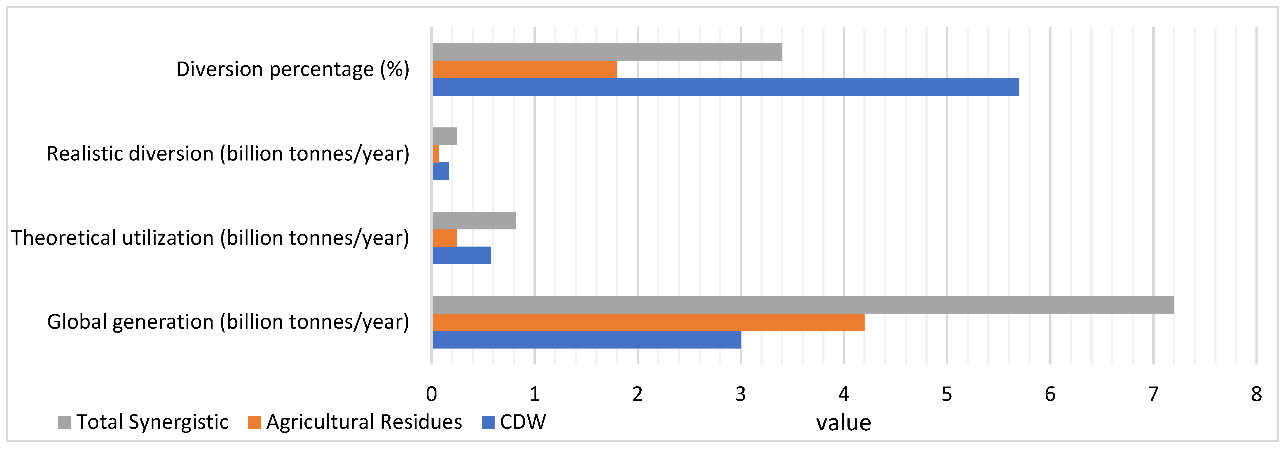 | Waste Stream | Global Generation (Gigatonnes/Year) | Theoretical Utilisation (Gigatonnes/Year) | Realistic Diversion (Gigatonnes/Year) | Diversion Percentage (%) |