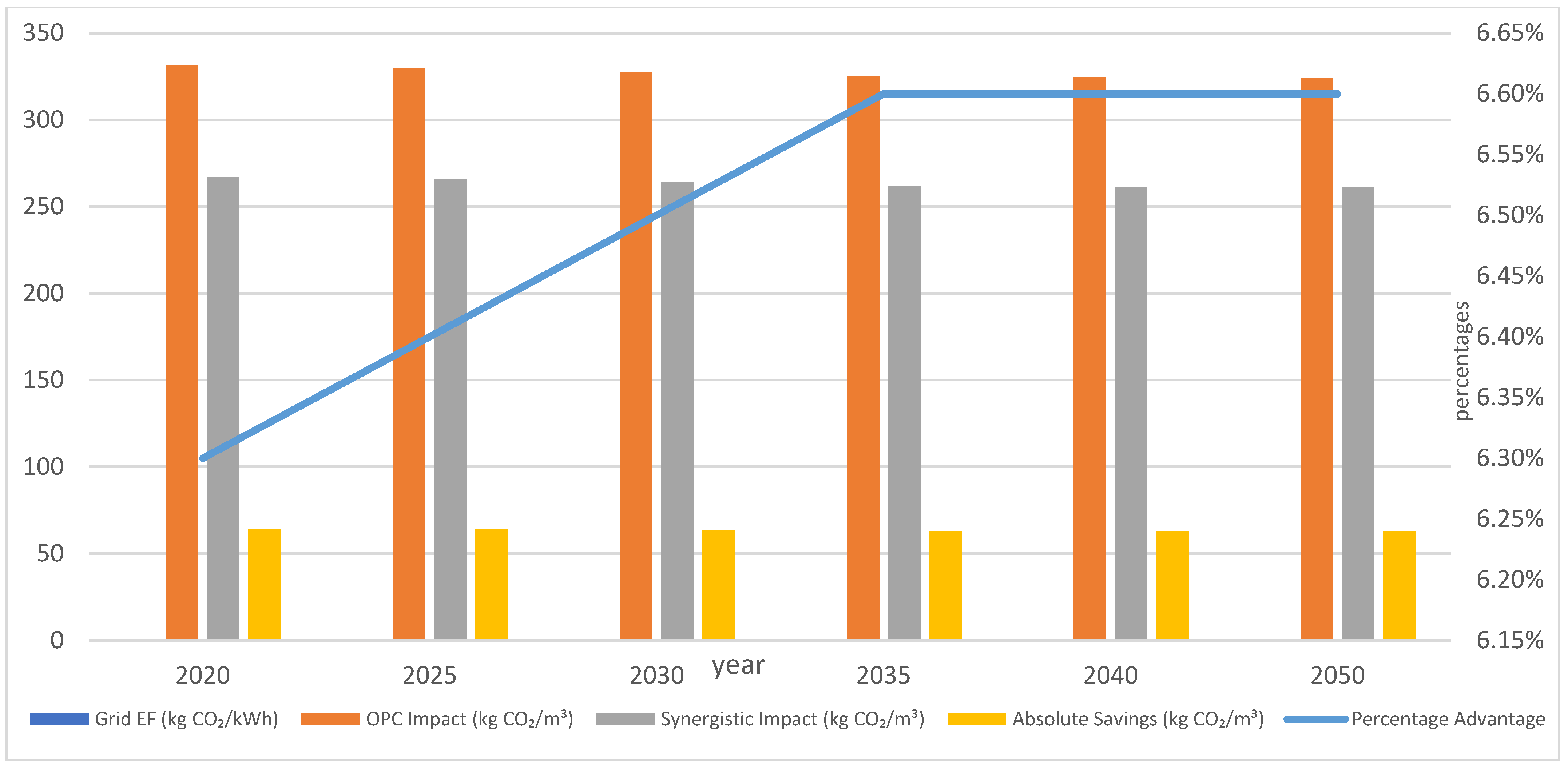 | Region | Cement EF (kg CO2/t) | Grid EF (kg CO2/kWh) | OPC Impact (kg CO2/m3) | Synergistic Impact (kg CO2/m3) | Synergistic Advantage |