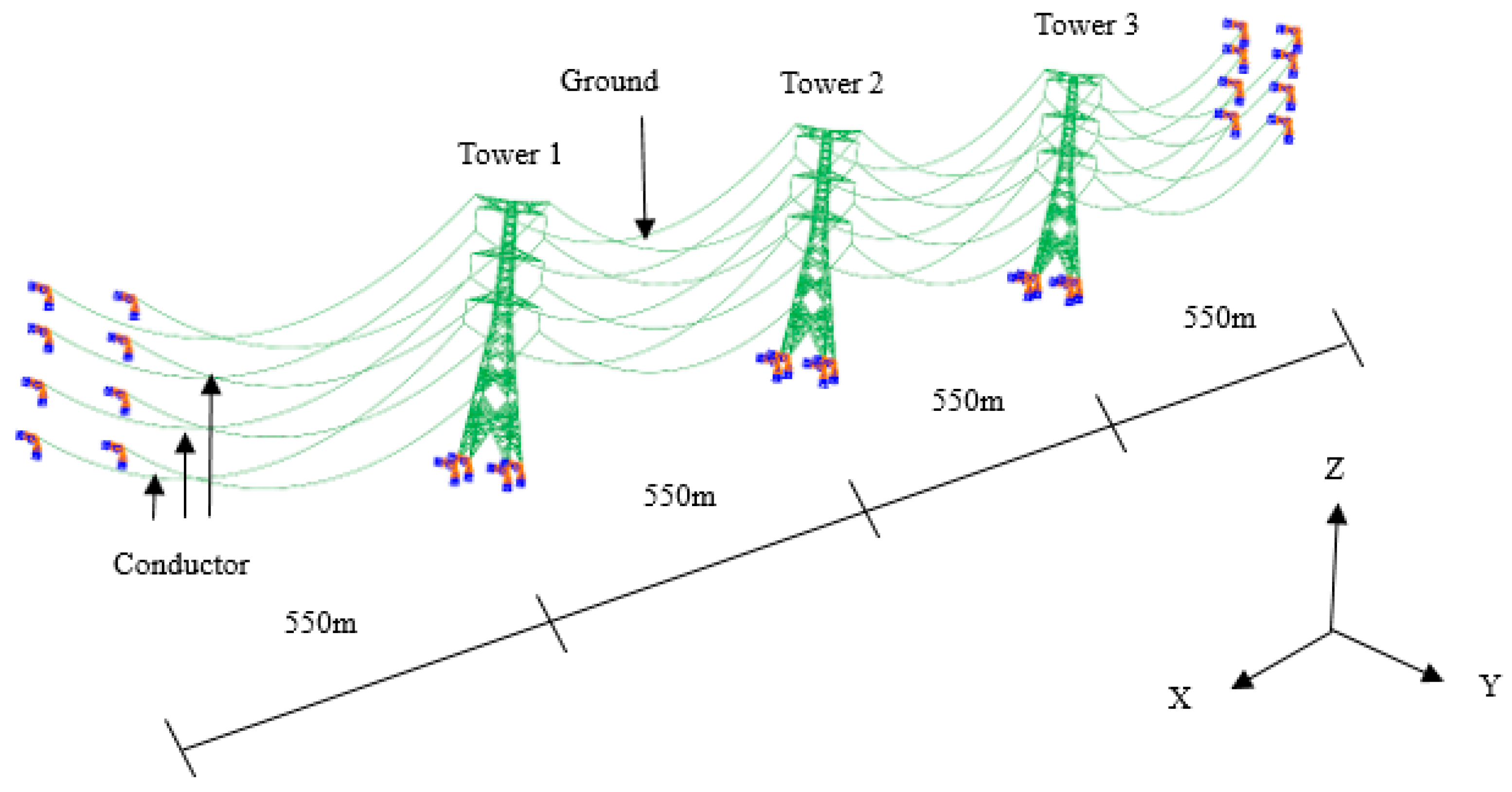 2.2. Establishment of the Finite Element Model for the Tower–Line System