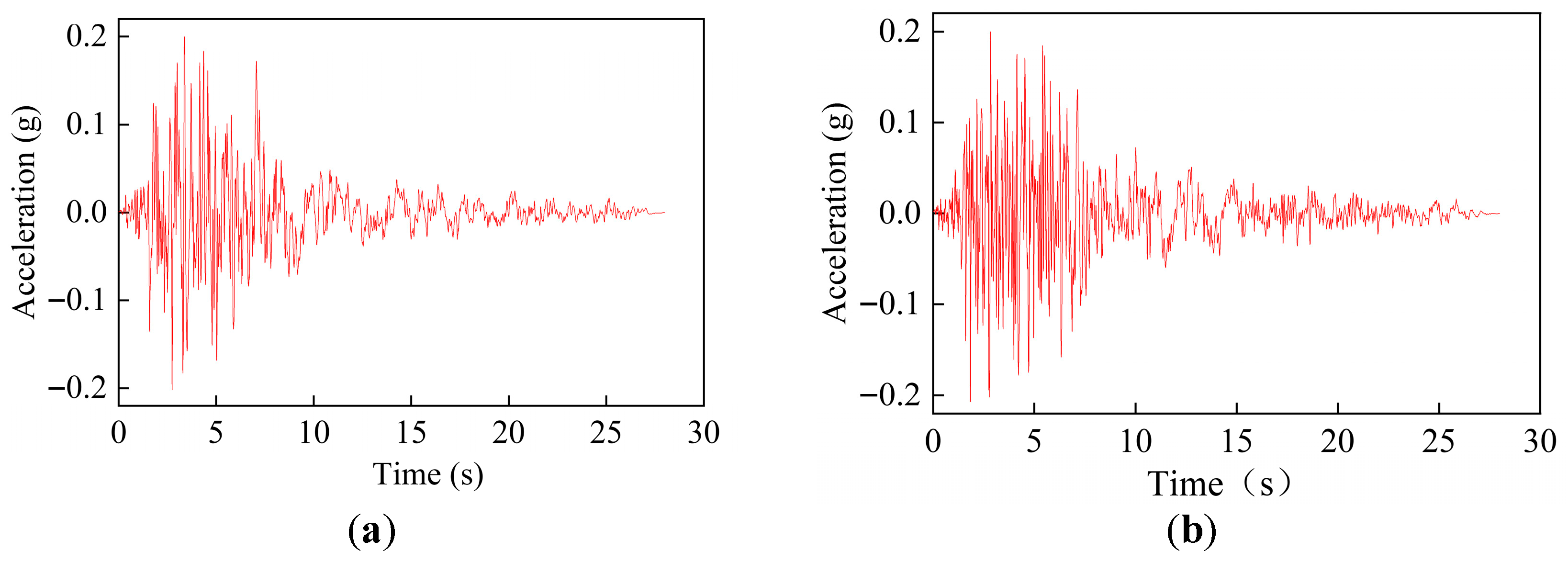 Figure 5. Time-history curve of seismic wave acceleration in the Imperial Valley. The graphs are listed as follow: (a) horizontal X-direction component and (b) horizontal Y-direction component.