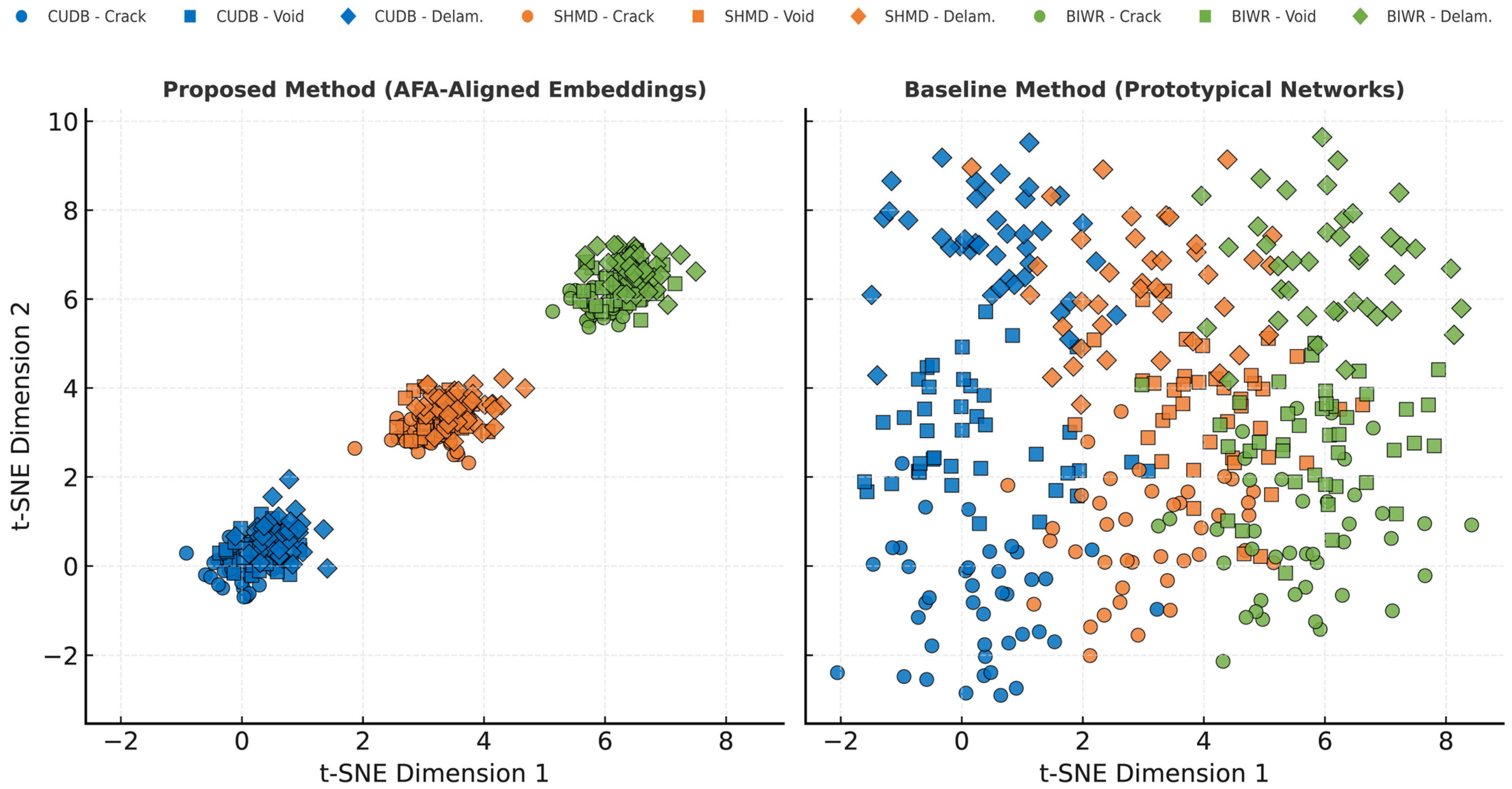 Parallel to this physics-guided foundation, the framework extends the capabilities of few-shot and self-supervised learning for data-efficient defect detection. Few-shot architectures such as prototypical networks have achieved substantial progress in guided-wave SHM applications [