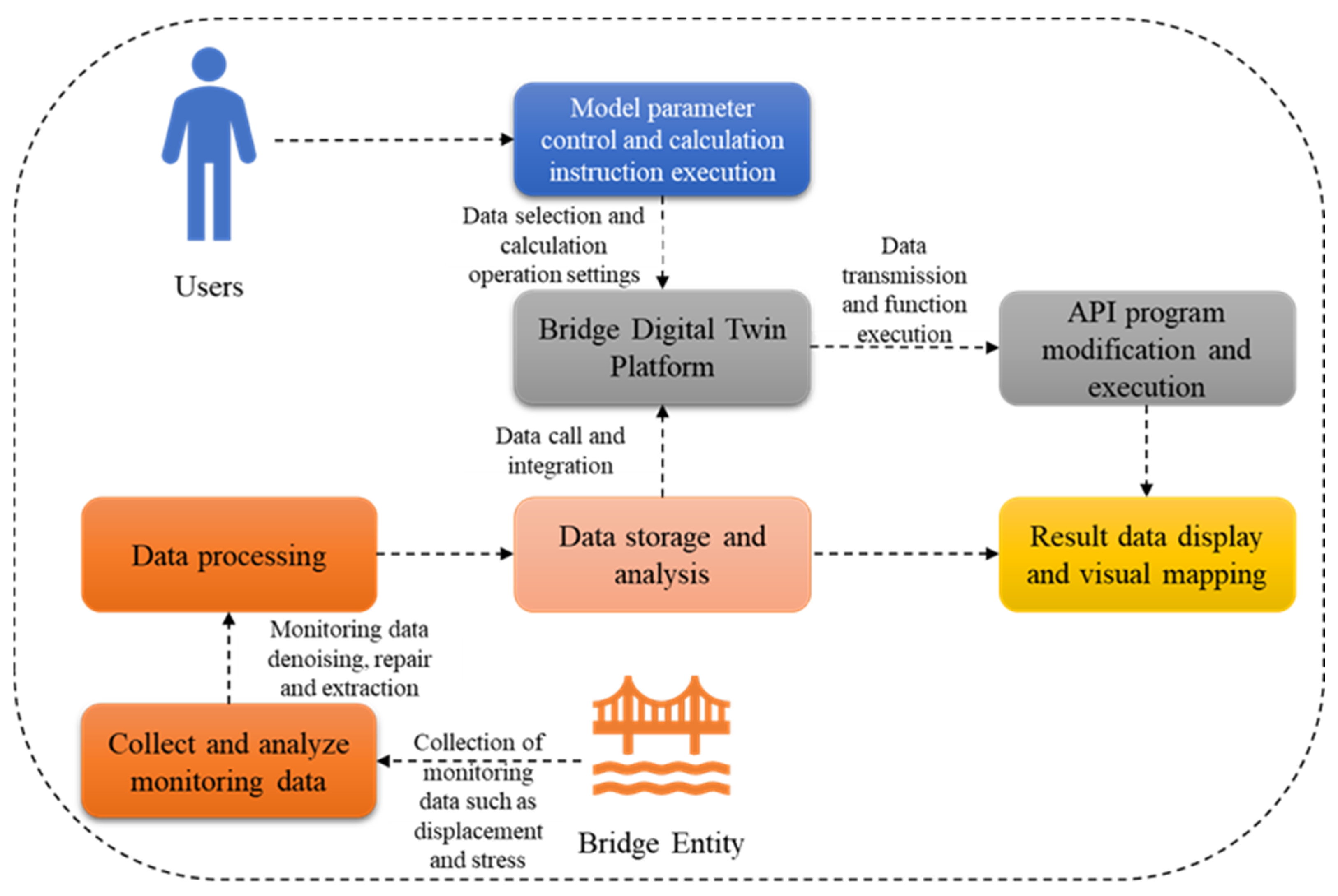 Cao, L.; Hu, P.; Chen, M.; Liu, Z.; Song, G.; Hong, D. Enabling Real-Time Mechanical Analysis in Digital Twin Systems: A Study on Multi-Source Heterogeneous Data Fusion via Midas Civil Integration. Buildings 2025, 15, 4228. https://doi.org/10.3390/buildings15234228