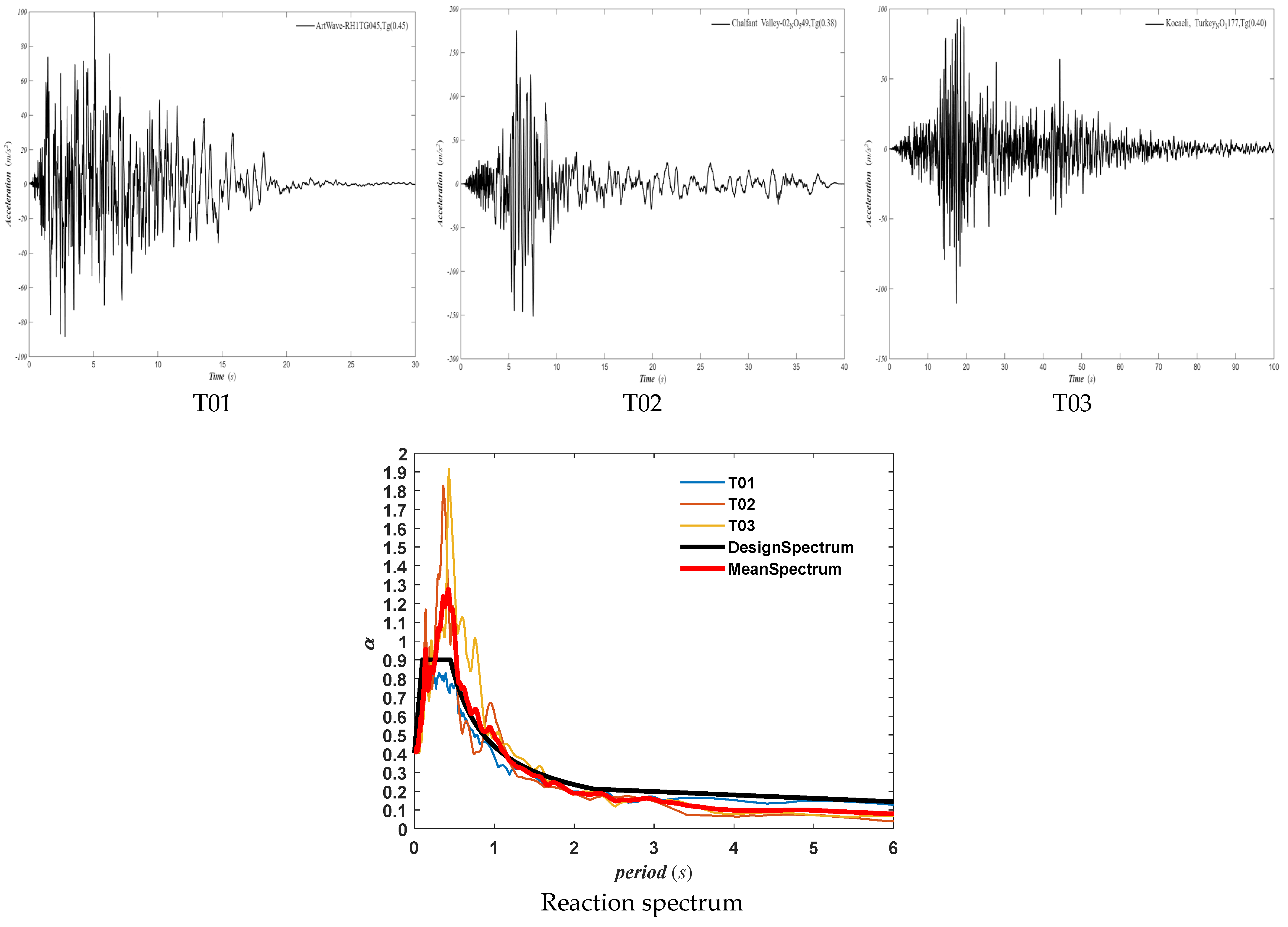 The structure’s damage control achieved the targeted performance goals. A plastic hinge distribution analysis revealed that the damping measures significantly optimized the damage pattern. Compared to the dense plastic hinges at the beam ends observed in the unreinforced structure on the upper and middle floors, the damped structure only exhibited minor plastic hinges on the most unfavorable floors. Notably, the damping scheme maintained the axial compressive stress peaks in the frame columns within 0.65 fc, effectively avoiding crushing failure risks. A time–history analysis with three seismic waves demonstrated that the maximum inter-story drift angles were strictly controlled within the 1/50 limit, fulfilling the seismic design requirements for key protection buildings, as per GB50011-2010.