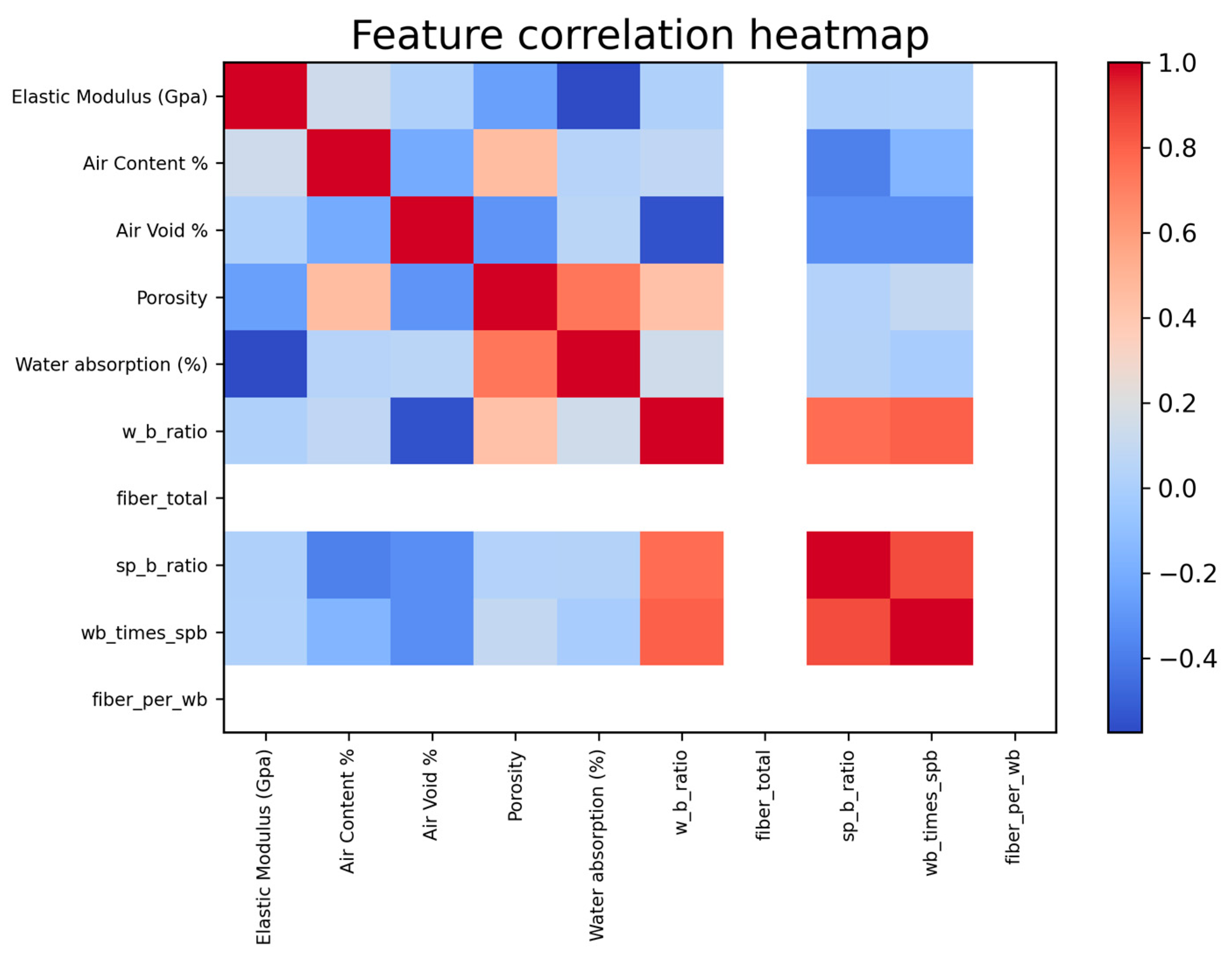 - Feature engineering guided by domain ratios (w/b, sp/b, fiber descriptors) provided interpretable predictors and improved generalization by embedding known physical relationships [45].
