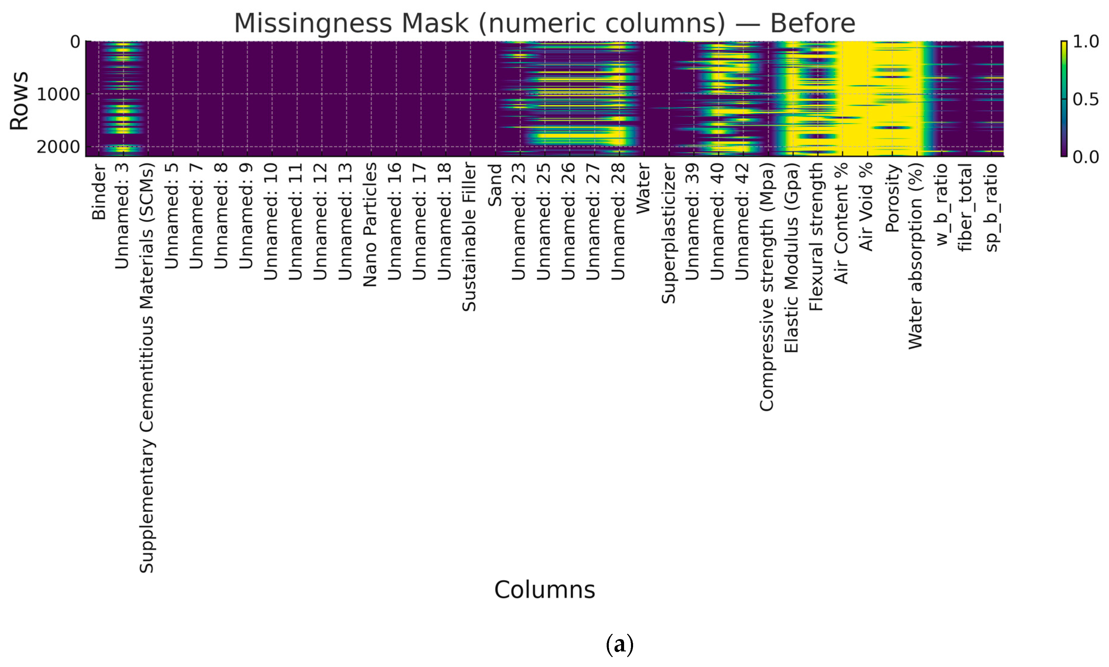 - Lyngdoh, G.A.; Zaki, M.; Krishnan, N.A.; Das, S. Prediction of concrete strengths enabled by missing data imputation and interpretable machine learning. Cem. Concr. Compos. 2022, 128, 104414. [Google Scholar] [CrossRef]
