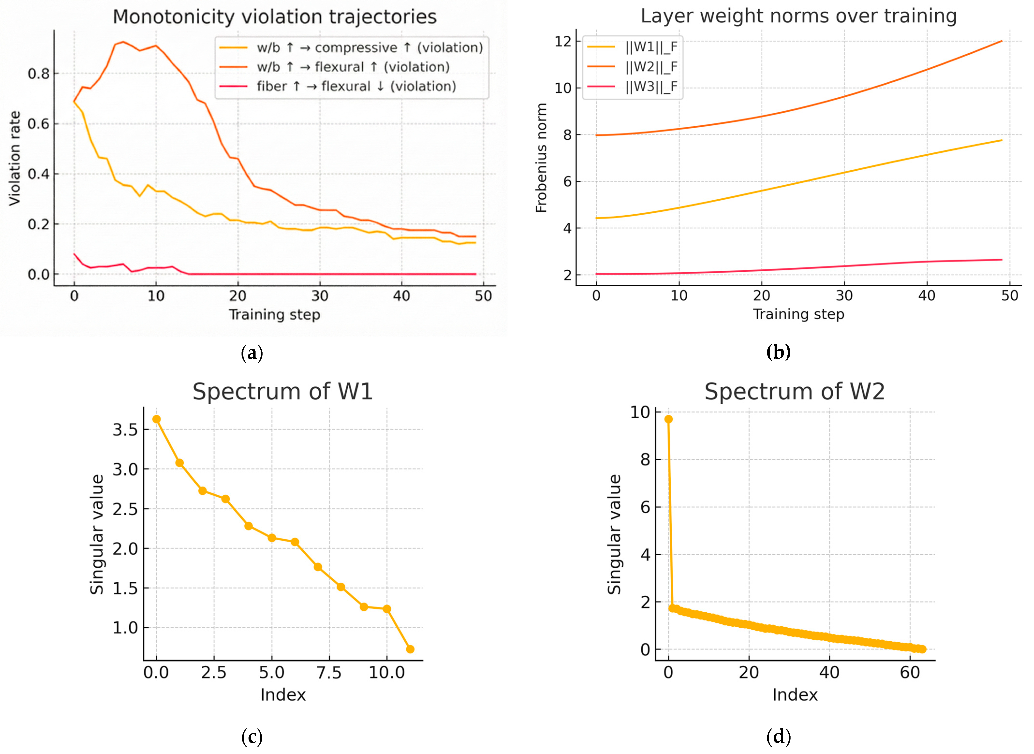 - The physics-informed PINN reduced monotonicity violations substantially over training, aligning gradients with expected physical trends and yielding smoother, low-rank representations.