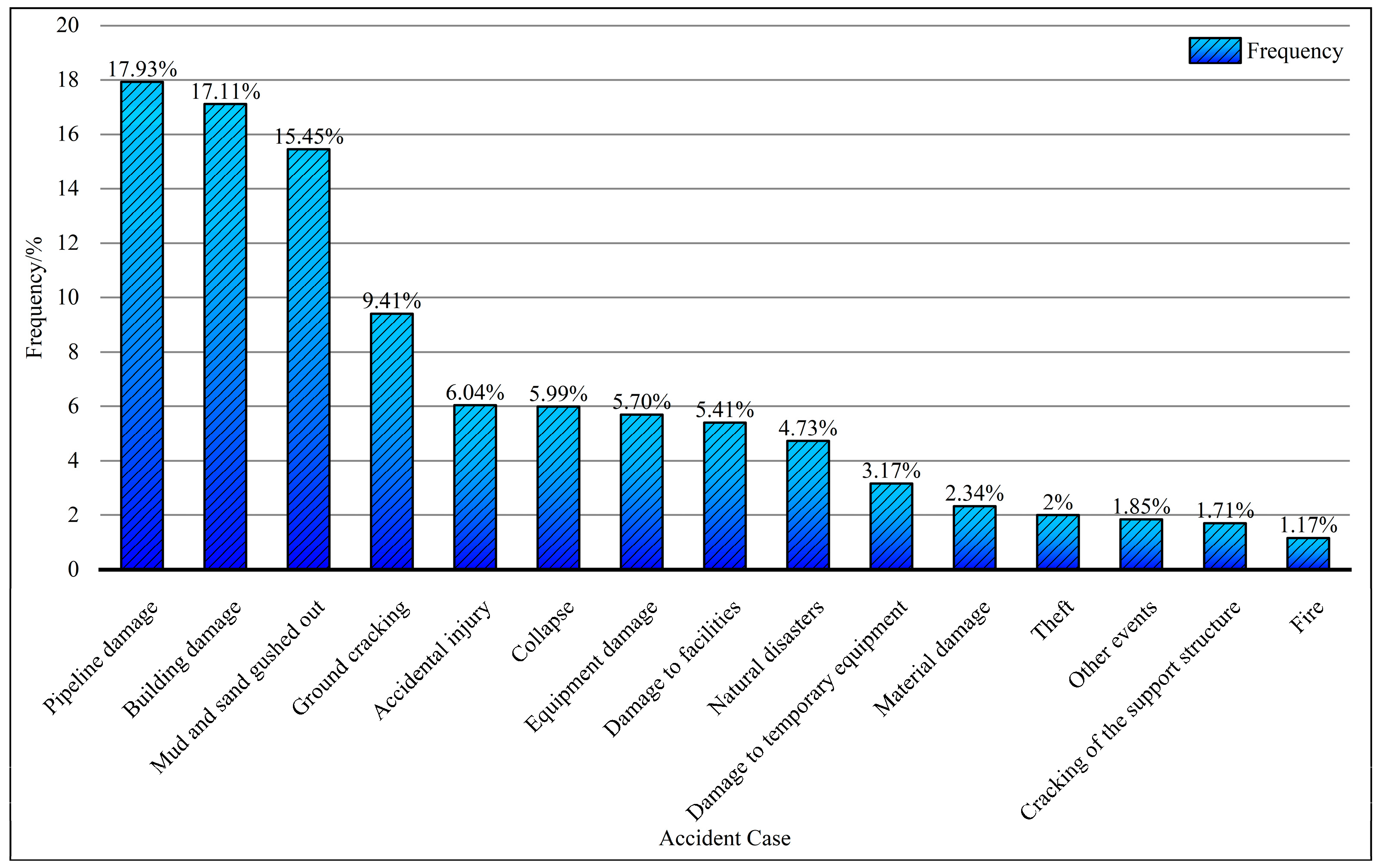 - Huo, X.; Du, S.; Jiao, L. Critical Causal Path Analysis of Subway Construction Safety Accidents Based on Text Mining. ASCE-ASME J. Risk Uncertain. Eng. Syst. Part A Civ. Eng. 2025, 11, 04024075. [Google Scholar] [CrossRef]