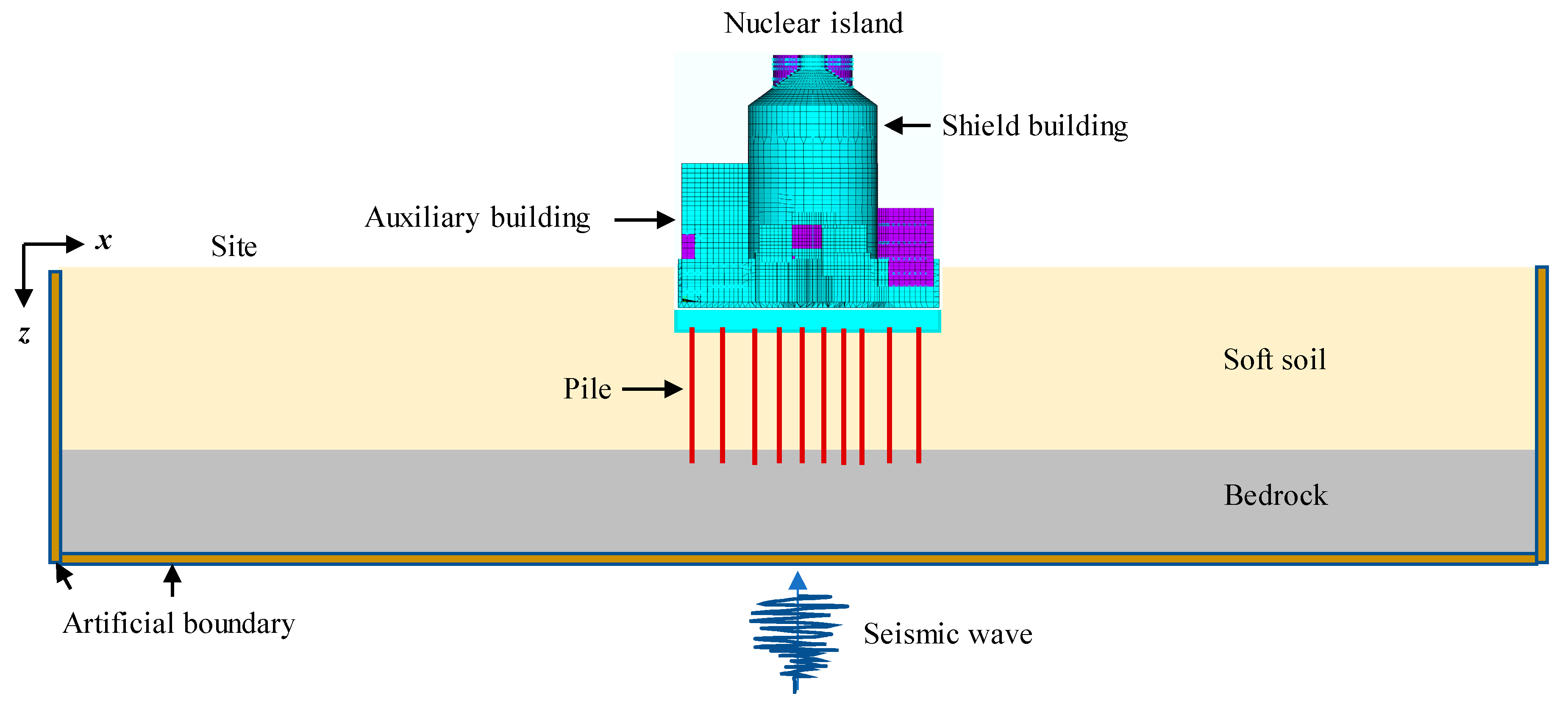- Chen, S.; Lv, H.; Zhou, G. Partitioned analysis of soil-structure interaction for Nuclear Island Buildings. Earthq. Eng. Struct. Dyn. 2022, 51, 2220–2247. [Google Scholar] [CrossRef]