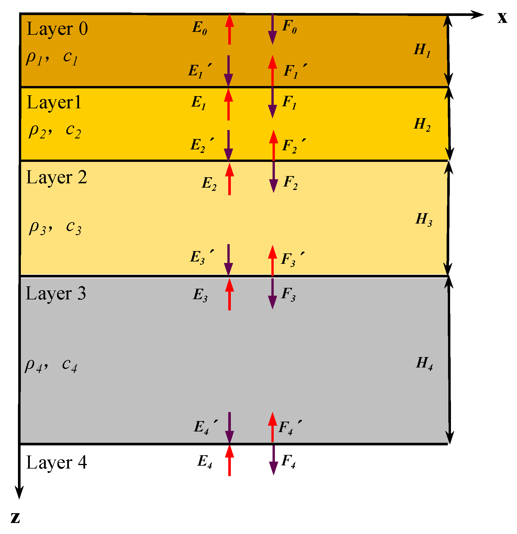- Thomson, W.T. Transmission of elastic waves through a stratified soil medium. J. Appl. Phys. 1950, 21, 89–93. [Google Scholar] [CrossRef]