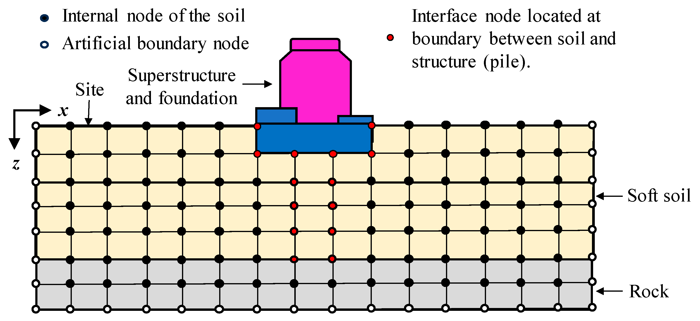 - Jeremić, B.; Yang, Z.; Lange, D.; Liao, S. Time domain simulation of soil–foundation–structure interaction in non-uniform soils. Earthq. Eng. Struct. Dyn. 2009, 38, 699–718. [Google Scholar] [CrossRef]