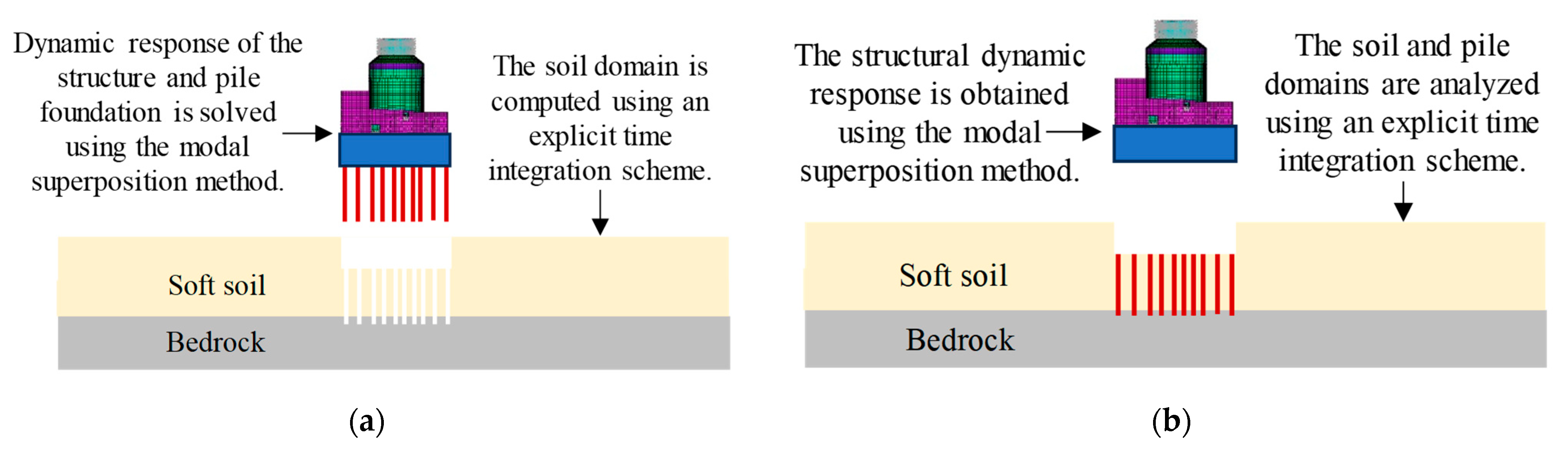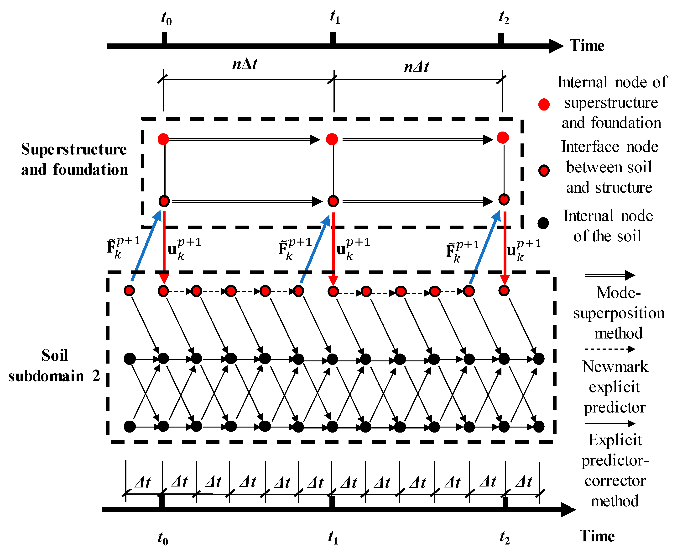 - Chen, S.; Wang, J.; Liu, Q.; Zhou, G.; Tang, H. Asynchronous parallel algorithm for three-dimensional soil-structure interaction analysis based on explicit-implicit integration scheme. Sci. Sin. Tech. 2017, 47, 1321–1330. (In Chinese) [Google Scholar]