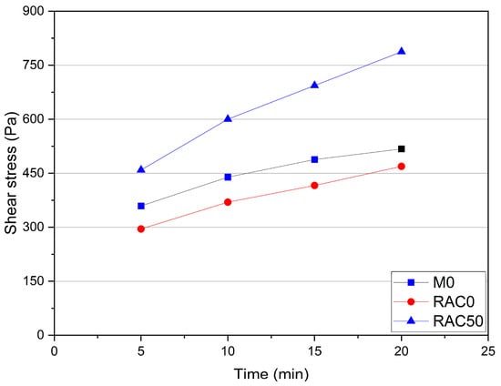 The values of yield shear stress (τ0) and plastic viscosity (ηp) for each composite were calculated using Equation (1).