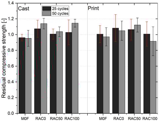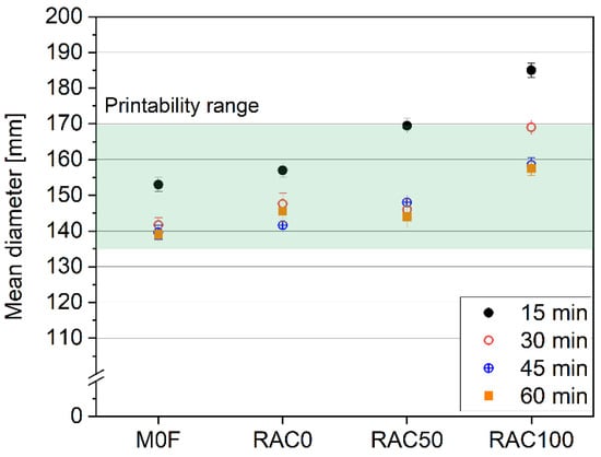 - To sum up, the research proves that the addition of fRA as a replacement for natural aggregate can be beneficial for 3D printing, particularly when the printing process is carried out approximately 45 min after water contact.