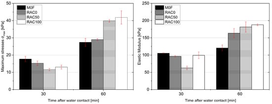 A two-stage testing protocol was designed. The first stage involved pre-shearing the material at a fixed shear rate of 100 s−1 for 30 s. After pre-shearing, shear stress measurements were conducted covering a shear rate ( range from 100 s−1 to 5 s−1. The full explanation of the rheology evaluations has already been presented in the authors’ previous studies [].