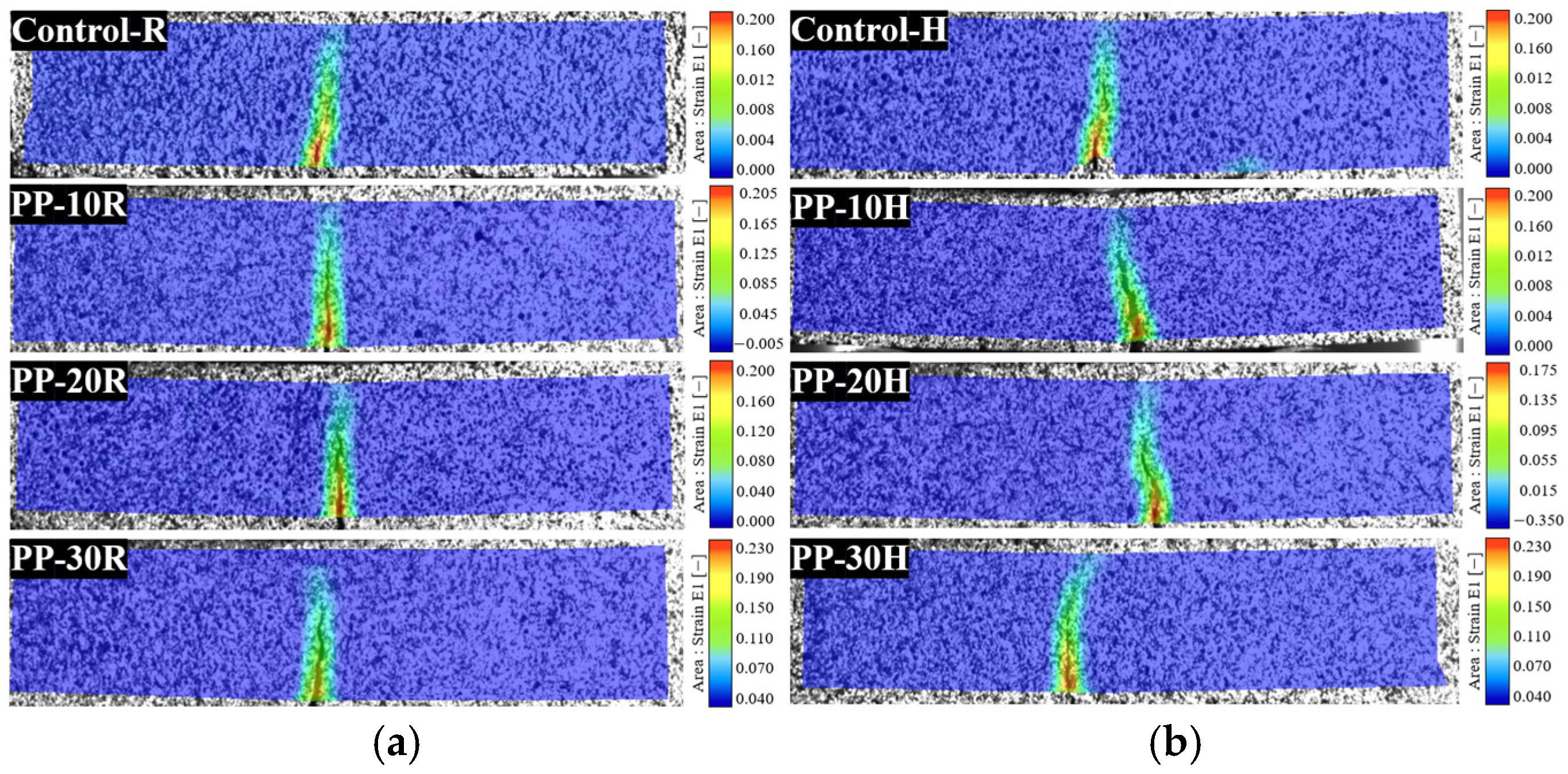 - At RT curing, PP enhanced the flexural strength of a cementitious composite by up to 28%. Under HT curing, degradation of the PP and cement matrix reduced flexural strength by up to 40%. DIC analysis revealed irregular cracks resulting from uneven pore distribution and thermal deformation.