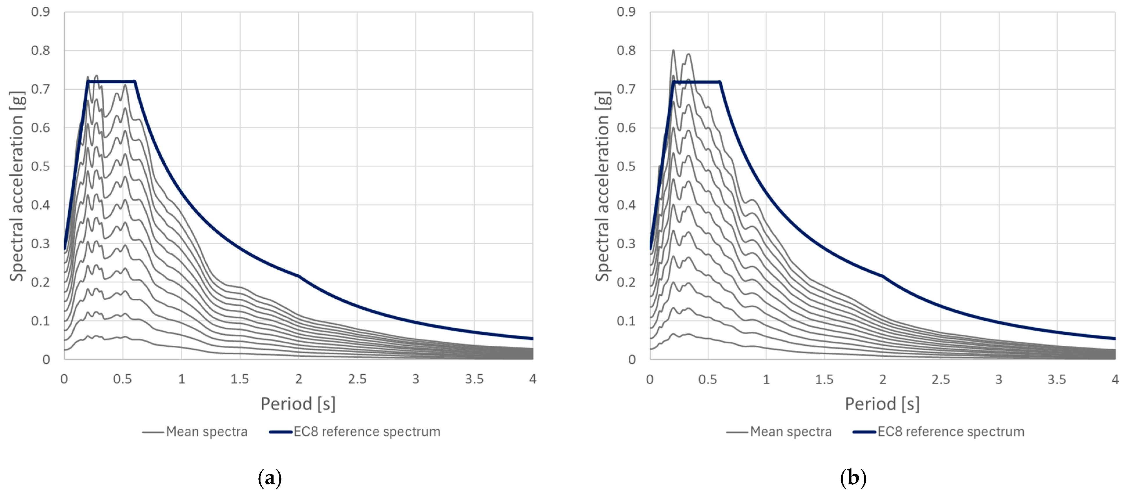 - Kohrangi, M.; Bazzurro, P.; Vamvatsikos, D.; Spillatura, A. Conditional Spectrum-Based Ground Motion Record Selection Using Average Spectral Acceleration. Earthq. Eng. Struct. Dyn. 2017, 46, 1667–1685. [Google Scholar] [CrossRef]