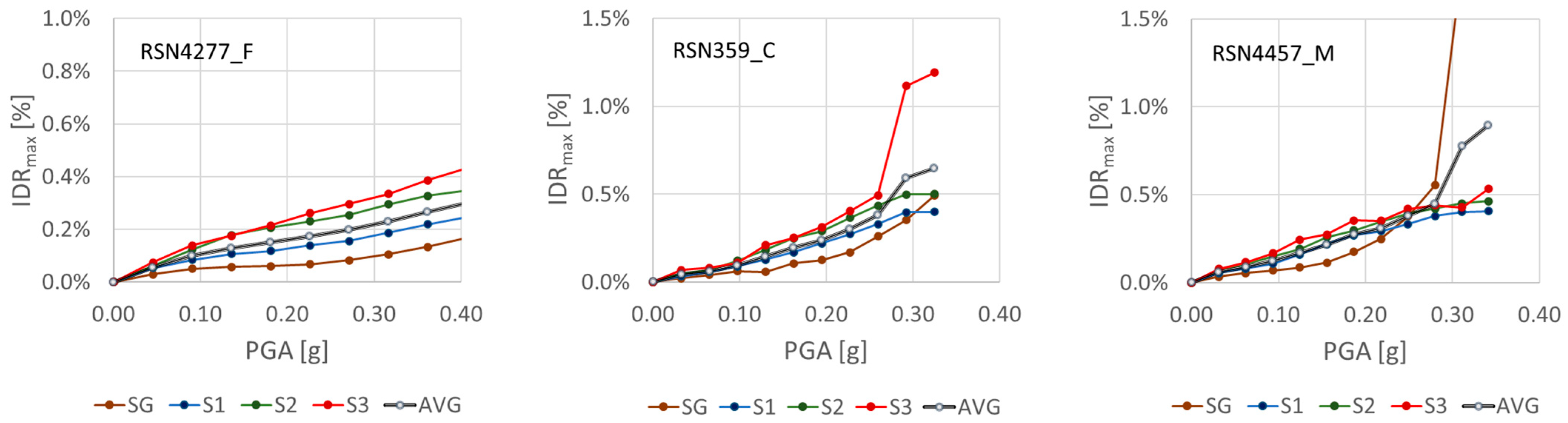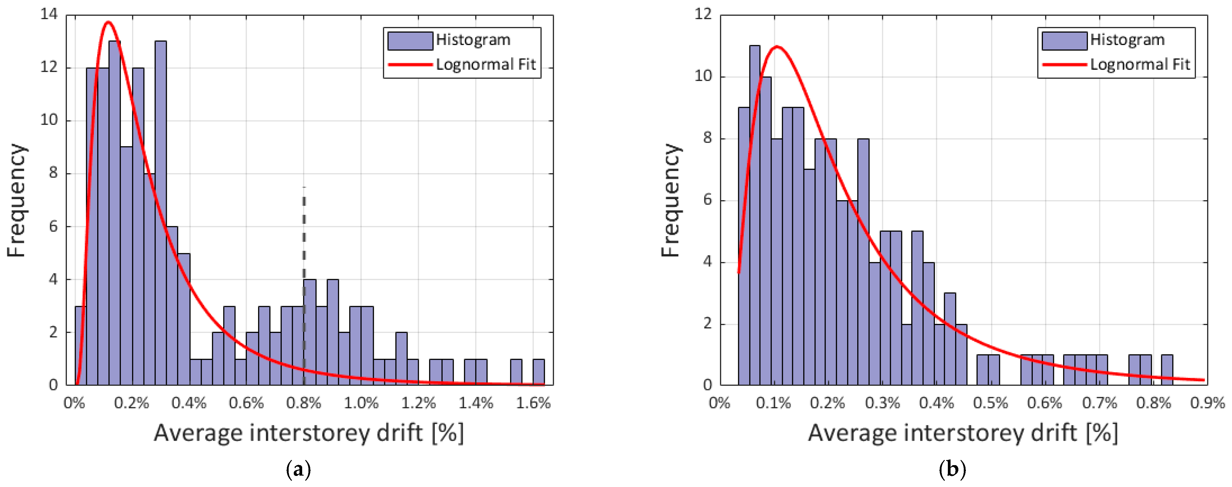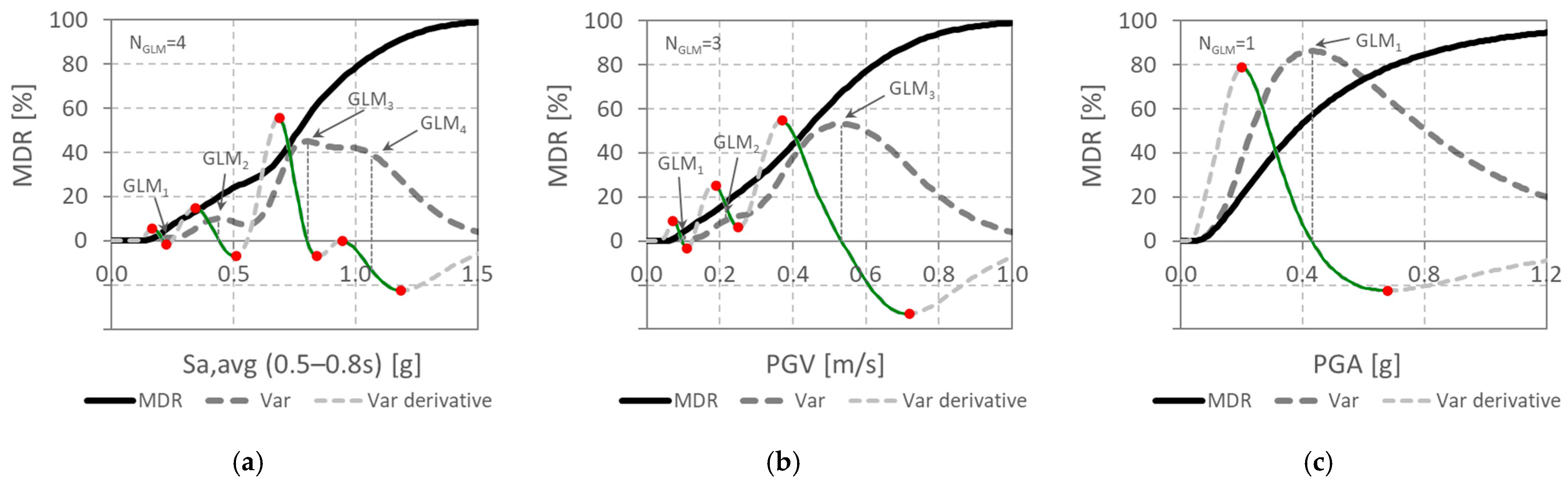 2.3. Optimal Intensity Measure Metrics and Seismic Demand Model