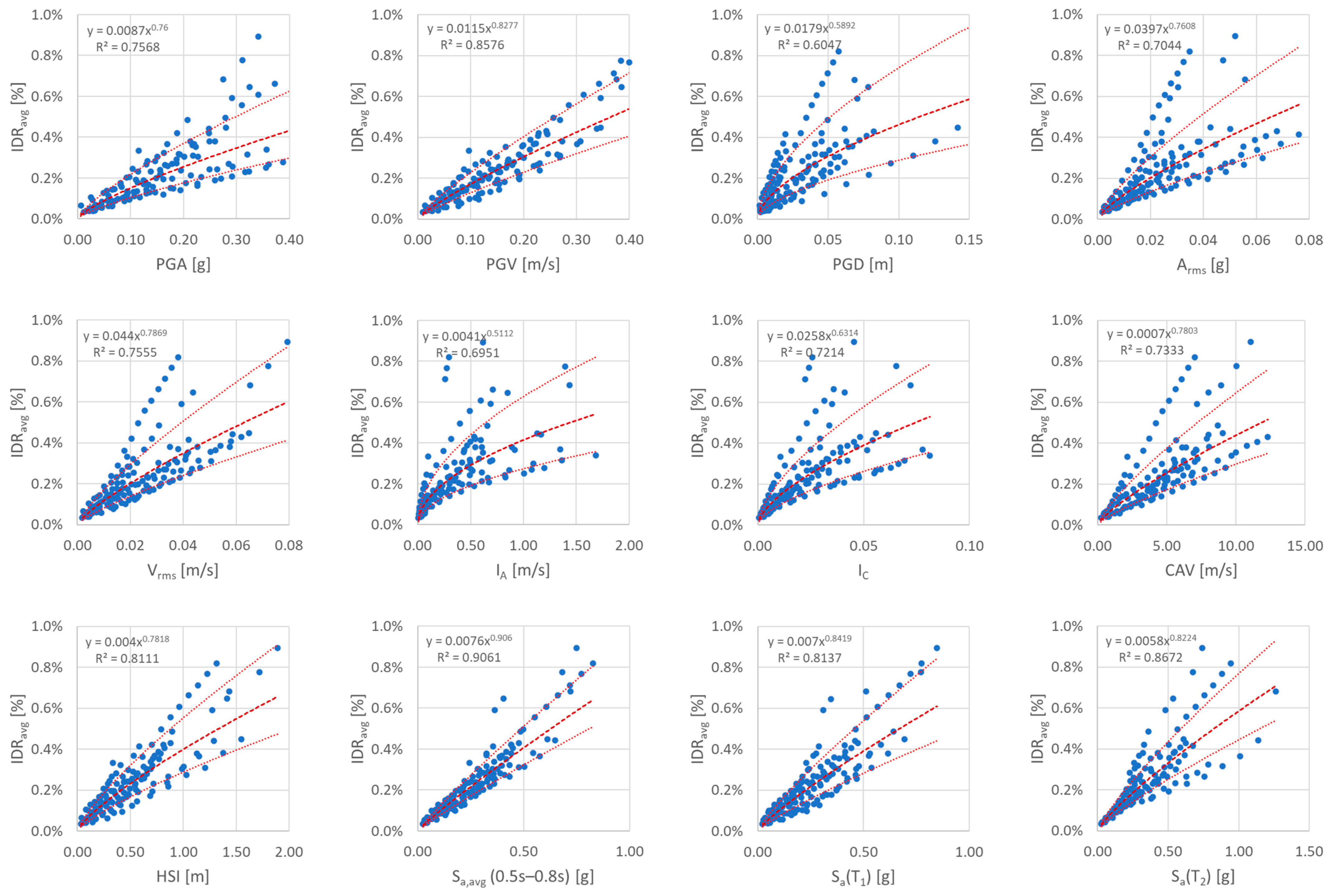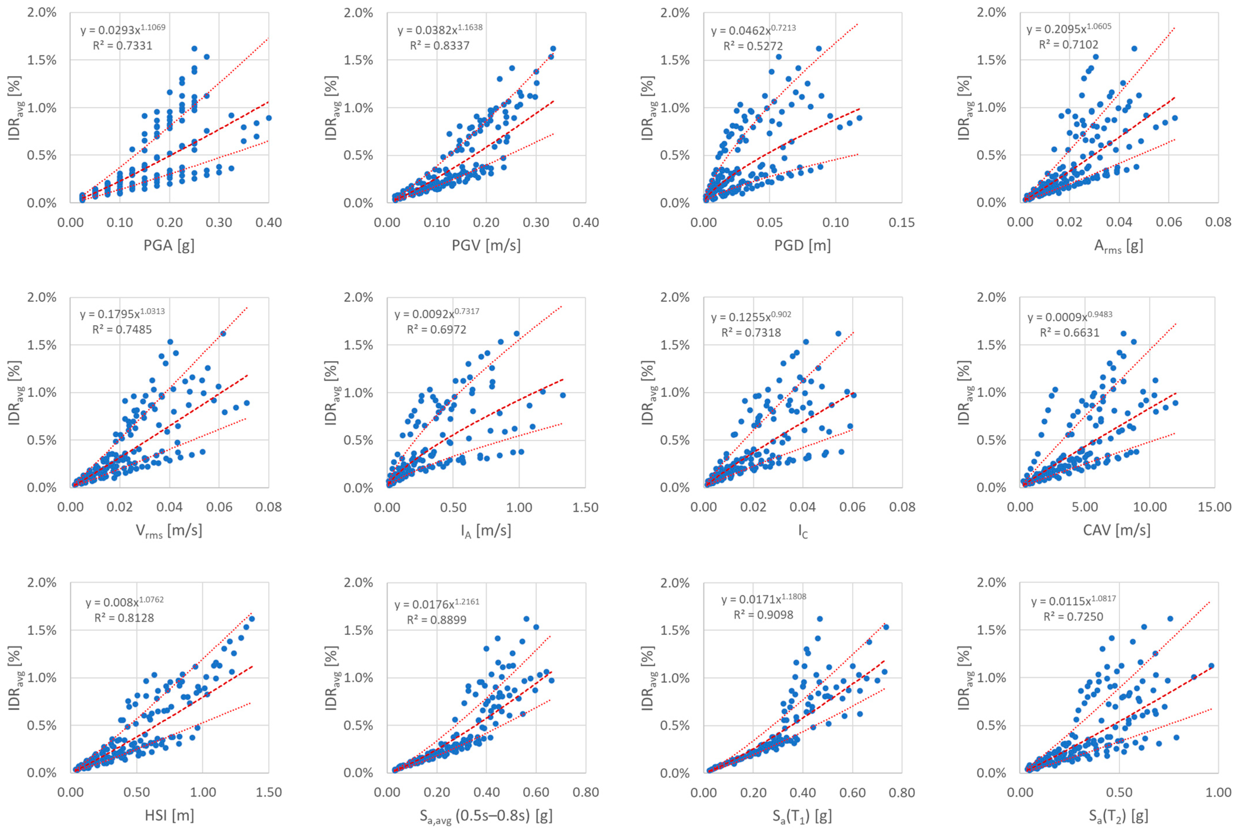 | Intensity Measure | Equation | a | b | R2 | σ | C.O.V. | a | b | R2 | σ | C.O.V. |