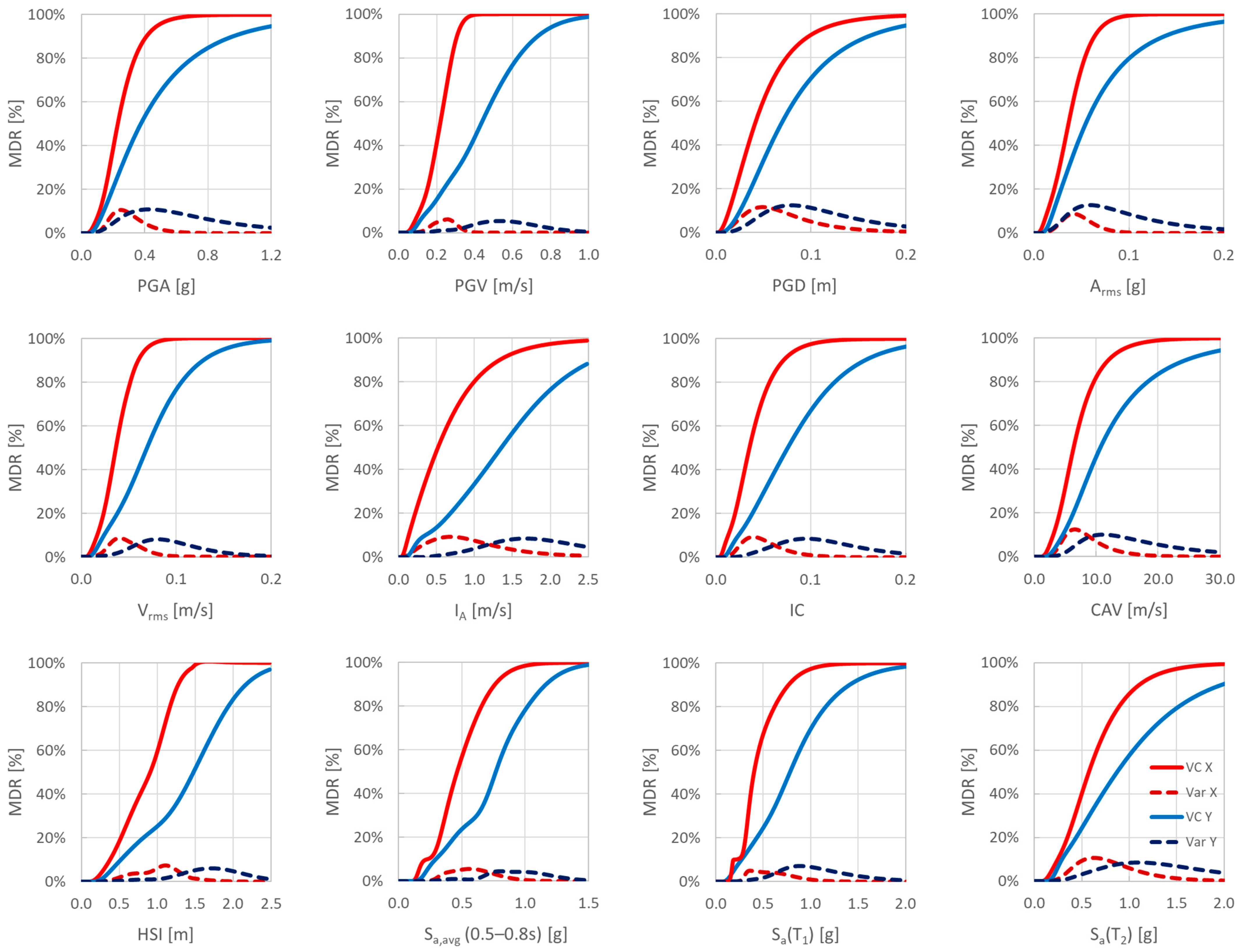 3.3. Evaluation of IMs According to New Criteria Based on Vulnerability Curve Variance
