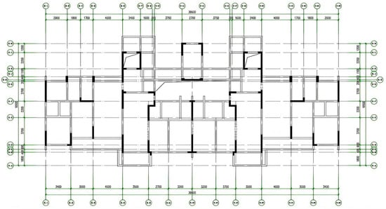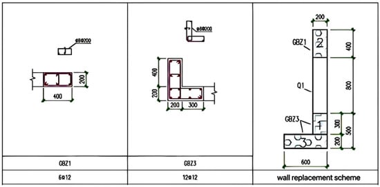 As previously mentioned, the initial vertical stress level significantly influences the load-bearing performance of the partially strengthened composite shear wall. When the initial vertical stress is excessively high, it can diminish the “effective” enhancement effect and applicability (e.g., excessive deformation or premature visible cracks may occur in the non-replaced concrete areas, affecting normal use). The original design of this project was for an 18-story structure. However, issues were identified during construction up to the 10th floor, at which point the upper 8 stories had not yet been built, and both finishing loads and live loads had not been applied. Structural analysis indicated that the vertical stress levels in the shear walls of the 1st to 3rd floors remained below 0.3. Therefore, the non-propped local reinforcement replacement method is considered for strengthening the shear walls from the first to the third floors. Under the premise of ensuring structural safety and reliability, this method can demonstrate multiple advantages in terms of economy, construction period, and construction safety, thereby achieving significant comprehensive benefits for the project.