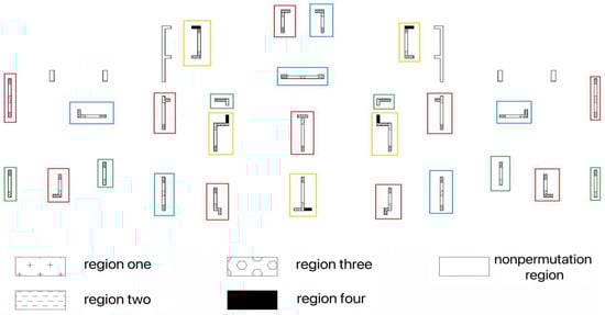 Due to the many shear walls that need to be reinforced on each of the bottom 3 floors, and the fact that construction has reached the 10th floor, safety risks should be avoided when performing the replacement reinforcement of shear walls. This plan divides the 27 shear walls to be reinforced on the same floor into four component replacement batches (red, yellow, blue, and green in Figure 14) according to the principle of spacing and the number of areas that need to be replaced in each wall. Each component is replaced in batches of two to four wall segments. To shorten the construction period, multiple batches (crossing the first, second, and third floors) can be conducted simultaneously within the limit of the axial compression ratio of the wall segments. The construction simulation model is divided into three stages: replacement and reinforcement of the first to third floors, construction of the eleventh to eighteenth floors, and loading of the main structure, with a total of 24 “construction loading simulation steps”.