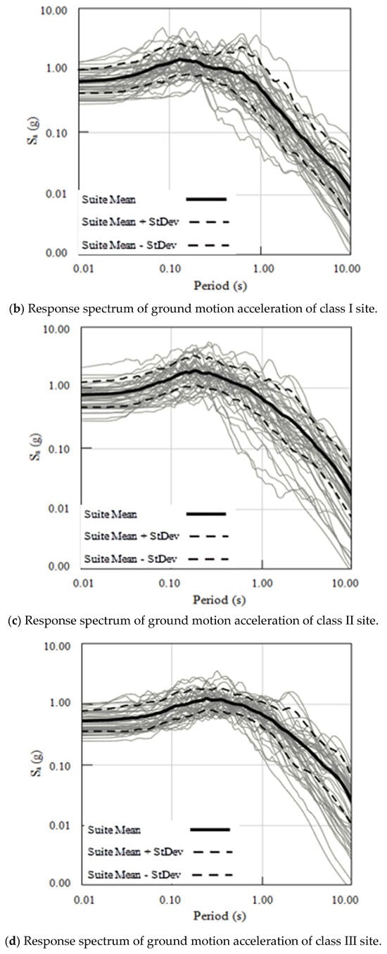 According to the research by Lü [], 178 seismic acceleration records from the PEER database were selected and classified according to the following principles.