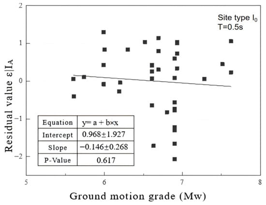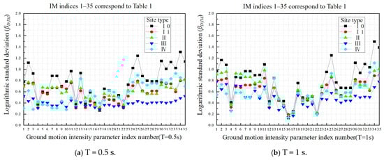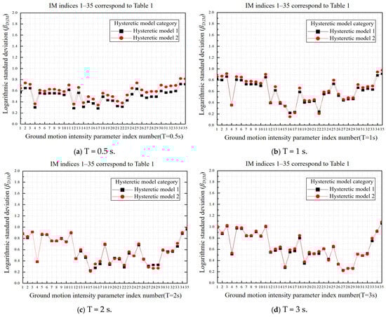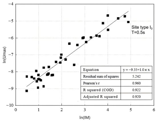where is the seismic demand of the structure under the i-th ground motion, and is the i-th ground motion intensity. Substituting Equations (10)–(12) into Equation (8), the probabilistic seismic demand model based on log-linear regression can be derived.