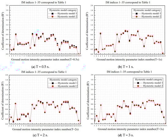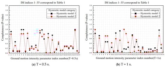 Probabilistic seismic demand analysis [,,] incorporates two key variables—a structural performance parameter and a ground motion intensity measure [,]—to assess seismic damage and structural response. Establishing a robust correlation between these variables is essential for accurate seismic performance evaluation and the reduction in response prediction variability. However, under earthquakes beyond the design basis—characterized by higher intensity, longer duration, and stronger nonlinear effects—conventional intensity measures may fail to reliably predict structural behavior, potentially leading to progressive collapse. Recent research has prioritized enhancing structural resilience through innovative methodologies, including the implementation of self-centering components, damage-mitigation strategies for irregular joints and composite frames, and material improvements incorporating modified fibers to enhance crack resistance [,,,,]. These approaches collectively contribute to maintaining functional integrity under extreme conditions. In this context, selecting optimal intensity measures that are closely related to structural seismic demand becomes critically important for advancing performance-based design under extreme seismic scenarios.