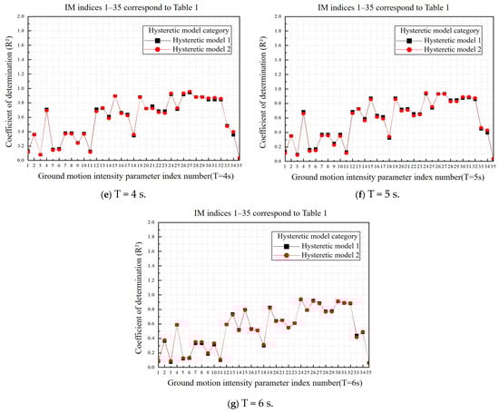 The dynamic time-history analysis of six reinforced concrete frame-core tube long-period structures, conducted by Guan et al. [], revealed that peak ground velocity and peak ground displacement are optimal for such structures. Osei and Adom-Asamoah [] investigated the sufficiency of the mean spectral acceleration with respect to the ground motion time history. The results suggest that the sufficiency of mean spectral acceleration may improve as the period of the single-degree-of-freedom system increases, compared to Sa(T1). Pejovic et al. [] proposed a new intensity measure and used it for probabilistic seismic analysis of RC high-rise buildings with core wall structures. The research results showed that the newly proposed strength parameter can effectively predict seismic motion intensity with minimal dispersion and satisfactory practicality. Zhang et al. [] conducted a study on the relationship between ground motion parameters and the seismic response of slopes. Their findings indicated that PGV can be considered the most suitable parameter for analysis. Torres et al. [] utilized the generalized intensity measure INpg to predict the efficiency of peak floor acceleration demands in steel frame buildings under seismic excitation. The results indicate that it can effectively enhance the predictive efficiency of structural nonlinear behavior under seismic actions. Zhong et al. [] proposed a scalar intensity measure (IM) for assessing the seismic response of single-layer reticulated domes and compared its applicability and superiority with 11 other existing IMs. The results indicated that this IM exhibits strong correlation, high efficiency, and good sufficiency relative to the other IMs. Yakhchalian et al. [] proposed a novel parameter known as gamma (γ), which serves as an effective indicator for selecting ground motion in earthquake collapse assessment for high-rise buildings. Li et al. [] classified ground motion intensity parameters into four categories: type I, represented by Sa(T1); type II, represented by PGA; type III, represented by PGD; and type IV, represented by PGV. The findings revealed a strong correlation between type I intensity parameters and various periodic structures, suggesting that they should be considered as the index for ground motion intensity. Ko and Ha [] conducted a study on the optimal measurement of seismic intensity for shaking foundations among 15 seismic intensity parameters. The results showed that peak ground velocity is an effective predictor of the seismic performance of shaking foundations. Armstrong et al. [] analyzed the best intensity measures that are related to deformations of embankment dams. The study found that Arias intensity (IA) was the most effective IM for predicting embankment dam deformations. Wu et al. [] conducted a study aimed at identifying the most effective scalar- and vector-valued intensity measures for predicting liquefaction triggering. They determined that the acceleration spectrum intensity (ASI) and the vector of peak ground acceleration and spectral acceleration at 0.3 s are the optimal scalar- and vector-IMs for evaluating liquefaction triggering. Padgett et al. [] conducted a study to evaluate the optimal intensity measures for generating probabilistic seismic demand models for bridge portfolios. The results of their study revealed that cumulative absolute velocity is the most optimal IM when using recorded motions. Chen et al. [] proposed a new scalar ground motion intensity measure called the energy–frequency parameter based on the Hilbert–Huang transform. The efficiency results demonstrate a strong linear correlation between the energy–frequency parameter and the engineering demand parameter (EDP) on a natural logarithmic scale, which applies to various structural fundamental periods. Flores et al. [] investigated the influence of strong ground motion duration on the probability of collapse of reinforced concrete walls. The results revealed that, compared to short-duration ground motion sets, long-duration ground motion sets decreased the average collapse capacity of medium-to-long period walls. In recent years, the development of IMs has started to focus on multimodal effects. Muho et al. [] and Kalapodis et al. [] have proposed spectral acceleration- and displacement-based IMs that incorporate higher-mode effects and performance levels through equivalent modal damping ratios.