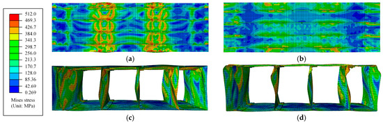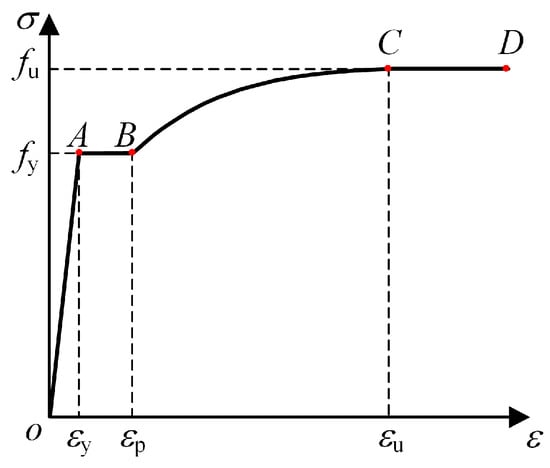 Initial imperfections were usually divided into geometric and residual stress initial imperfections. For the geometric initial imperfections, the imperfection amplitude was taken as 0.34 tw [58] (tw was the thickness of the steel plate). This magnitude was introduced into the FEMs by superimposing the first-order elastic buckling mode shape.