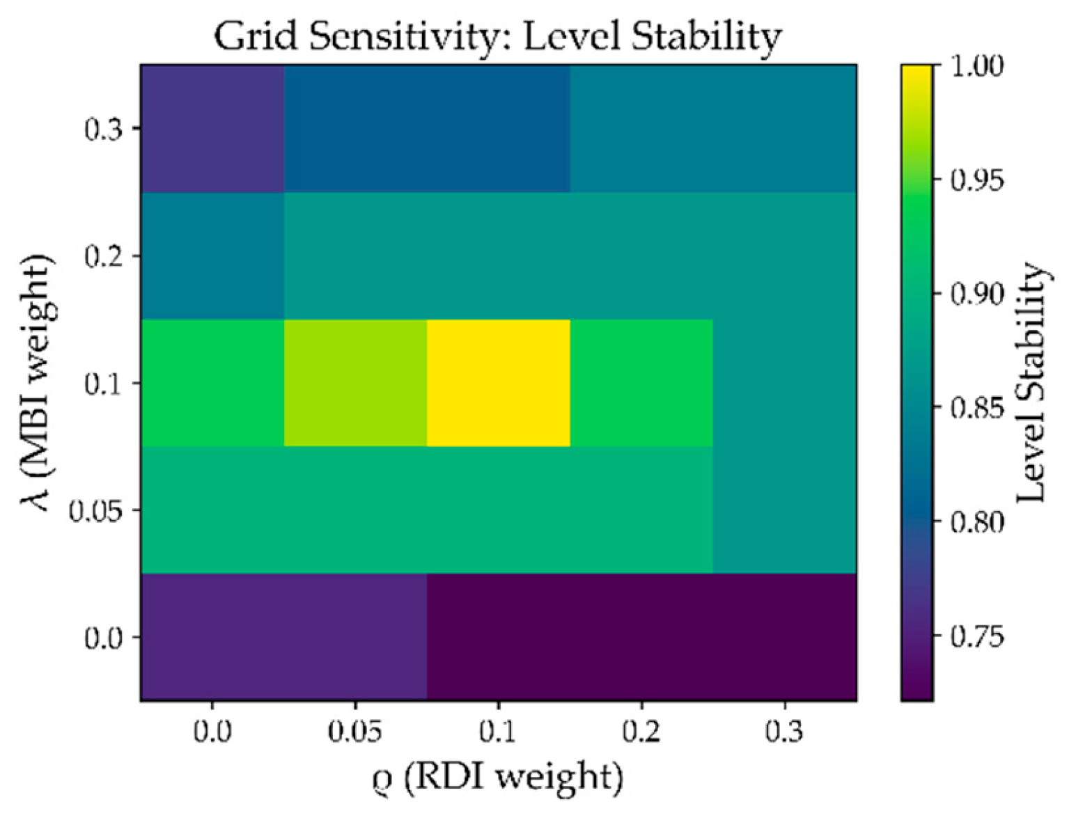 To obtain interval-valued resilience scores, random draws are generated for each indicator under empirically reasonable ranges (guided by historical dispersion). The aggregated resilience index is then computed for each draw to produce a distribution for grading. A simple stability check, repeating simulations with different random seeds and modestly perturbed indicator ranges, confirms that grade tiers are insensitive to minor input variations. This step complements EWM by quantifying uncertainty that point estimates alone cannot capture.
