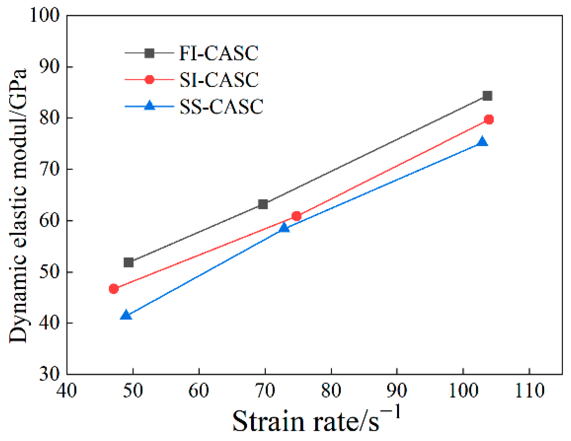 3.3. Dynamic Strength and Modulus of Elasticity